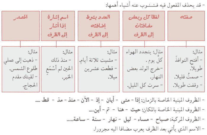ظرف زمان | ظرف مكان | متصرف | غير متصرف |