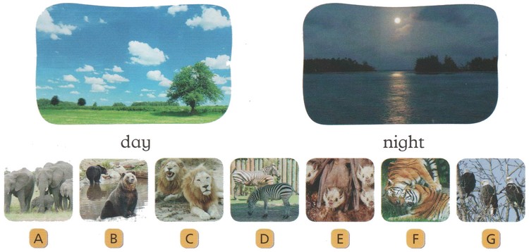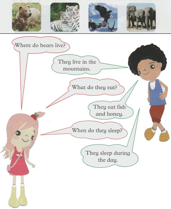 Korea. They are orange or brown with black stripes. They eat fish and birds and sometimes bears. They sleep during the day and eat at night.