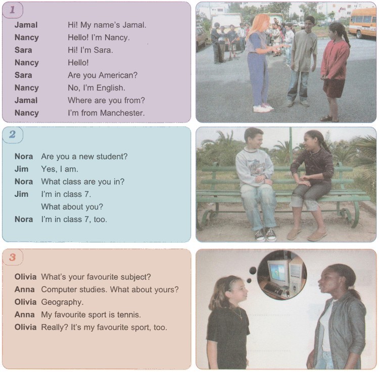 I’m - English - Hello - where - from - American - what about you? - Moroccan.