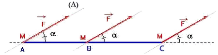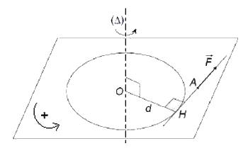 Le moment MΔ d’une force F par rapport à l’axe de rotation Δ orthogonal à sa droite d’action est :