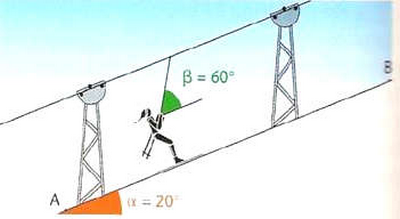 La tension du câble qui tire le système fait un angle β=60° avec la ligne de plus grande pente.