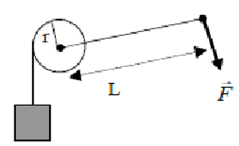 Un treuil de rayon r=10cm est actionné à l’aide d’une manivelle de longueur L=50cm.