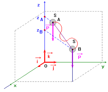 Dans un repère O,i,j,k les coordonnées du poids P et du vecteur déplacement sont AB :