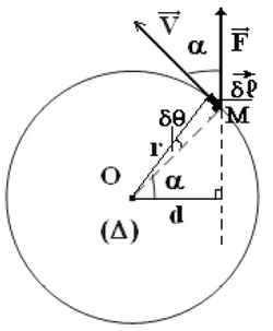 Le mouvement du point M est circulaire, on a δl=r.δθ, donc : δWF=F.δl=F.r.δθ.cosα