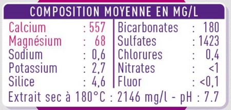 - Exemple : L'étiquette d'une bouteille d'eau minérale :