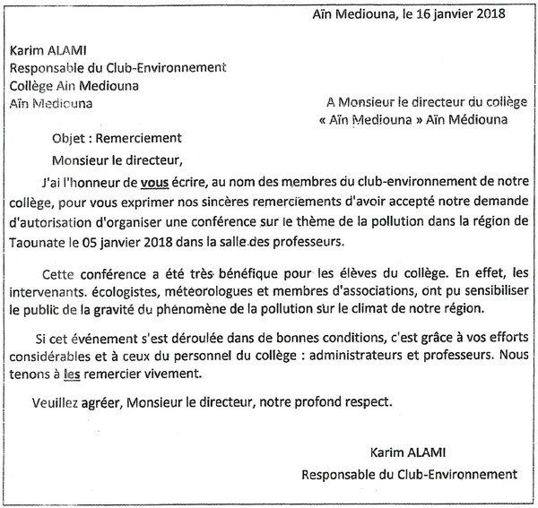 - Pourquoi Karim a-t-il envoyé cette lettre ?