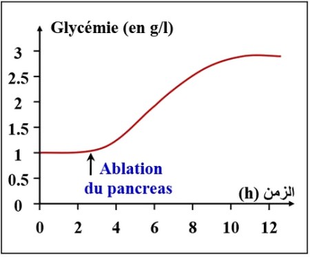 Après ablation du pancréas et augmentation de la glycémie, le branchement d’un pancréas sain ramène la glycémie à la valeur normale. Mais le débranchement de ce pancréas sain, entraîne l’élévation de la glycémie.