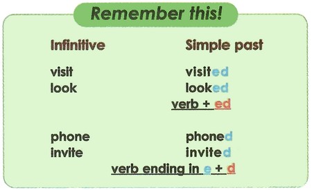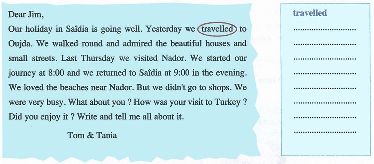 - Read the letter, then circle and write in the list all the verb forms in the past :