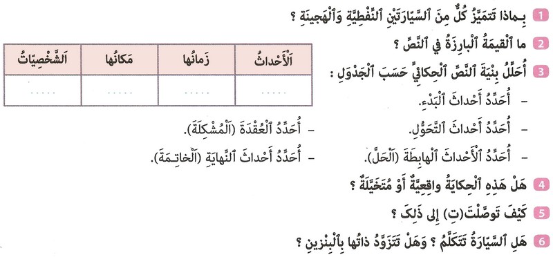أتتبع الخطوات المبينة في الجدول لكتابة قصة خيالية :