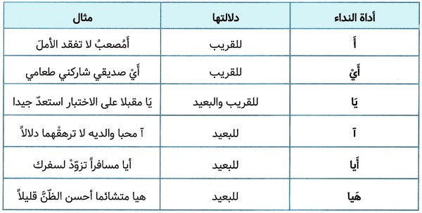 2- حروف النداء هي: الهمزة، و«أي» للقريب، و«آ وأيا وهيا» للبعيد» و«يا» للقريب والبعيد.