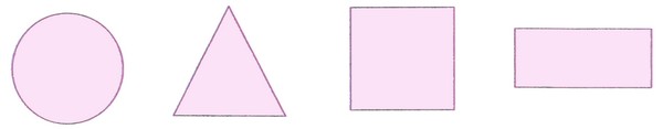 - Voici des formes d'objets qui nous entourent, j'indique le mot qui convient à chaque forme géométrique : Carré, rectangle, cercle, triangle.