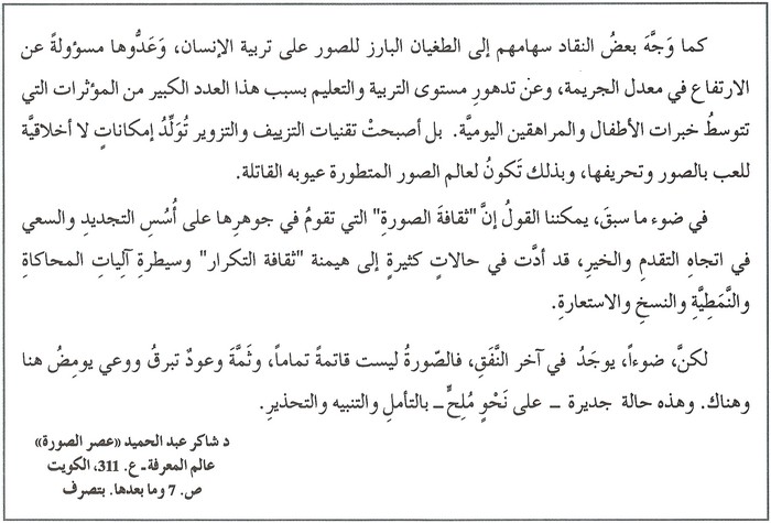 درس النصوص 2-4 : نص الثقافة البصرية (عصر الصورة «شاكر عبد الحميد»)