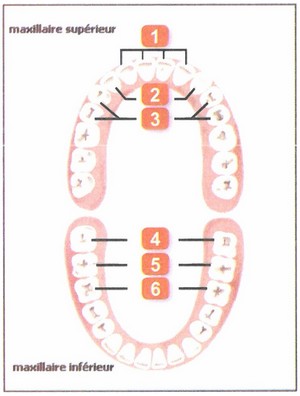 - Utilise l’encyclopédie numérique Encarta pour trouver les noms des dents qui correspondent à chaque numéro :