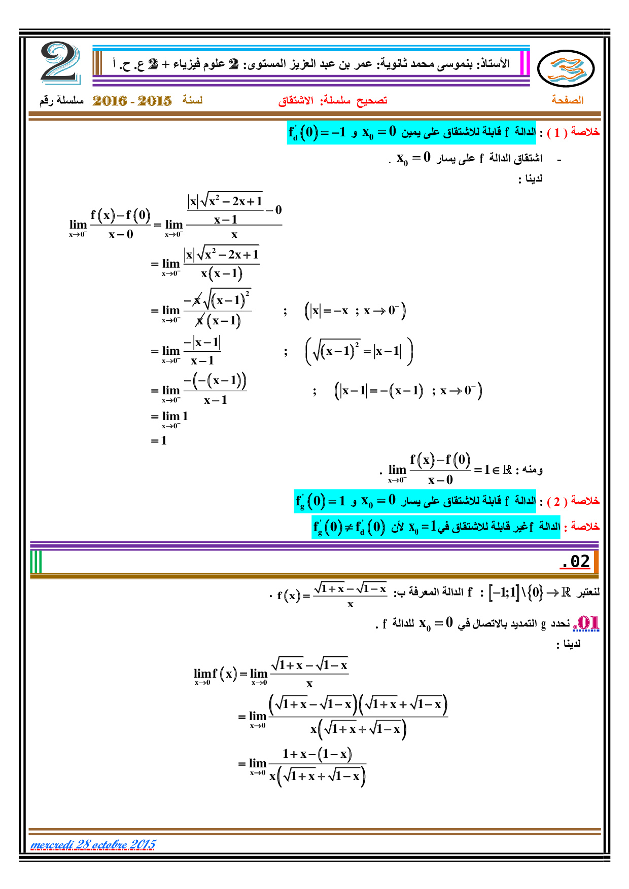 الاشتقاق - تصحيح سلسلة التمارين 1