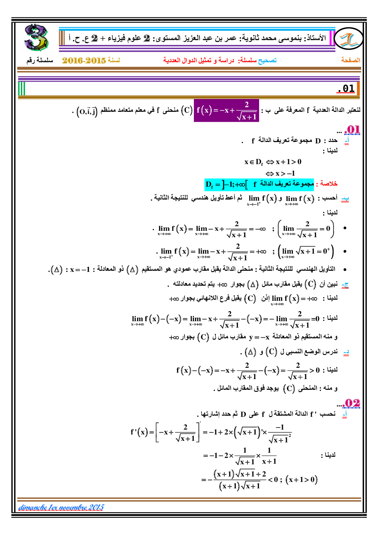 دراسة الدوال وتمثيلها المبياني - تصحيح سلسلة التمارين 1