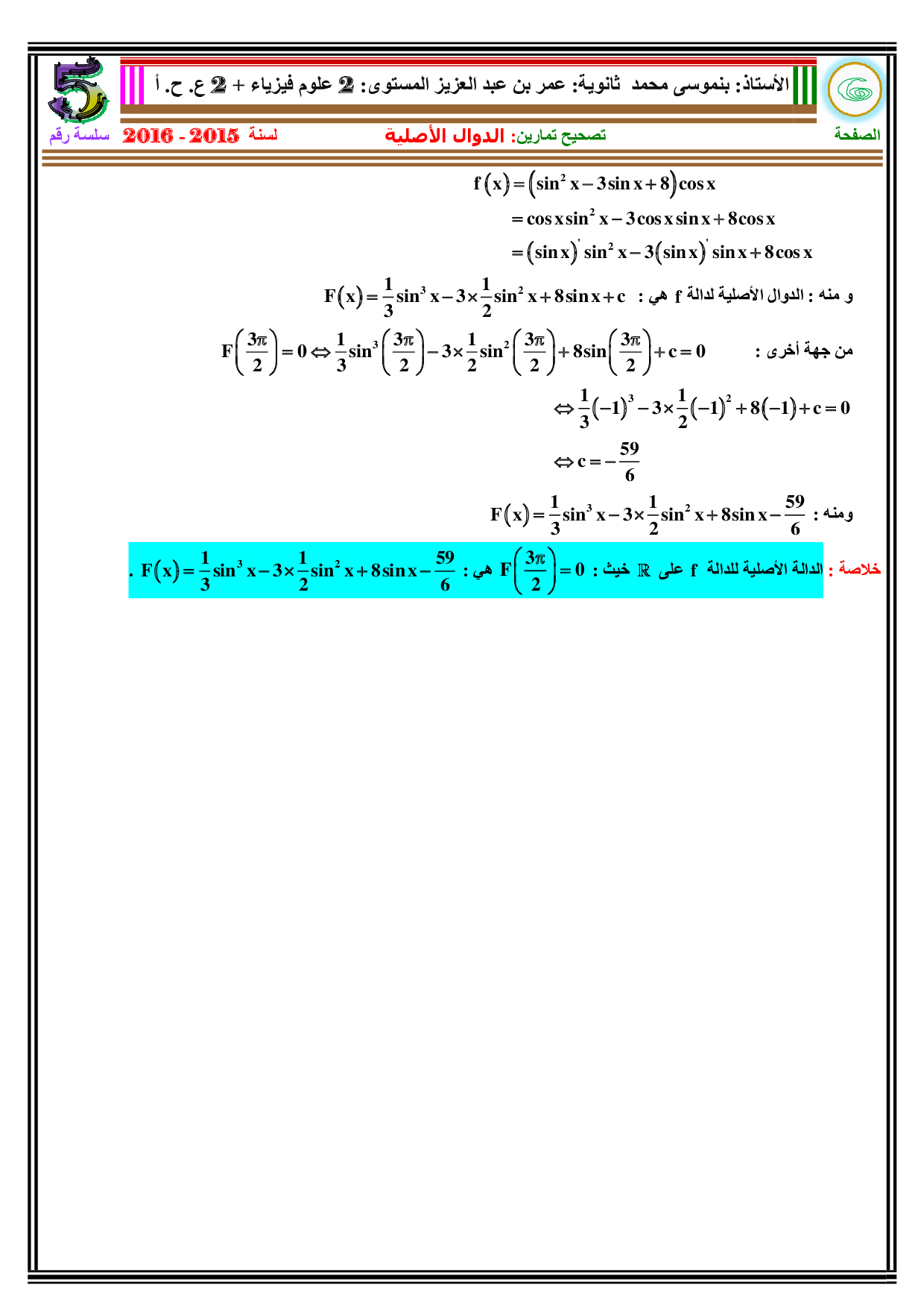 الدوال الأصلية - تصحيح سلسلة التمارين 1