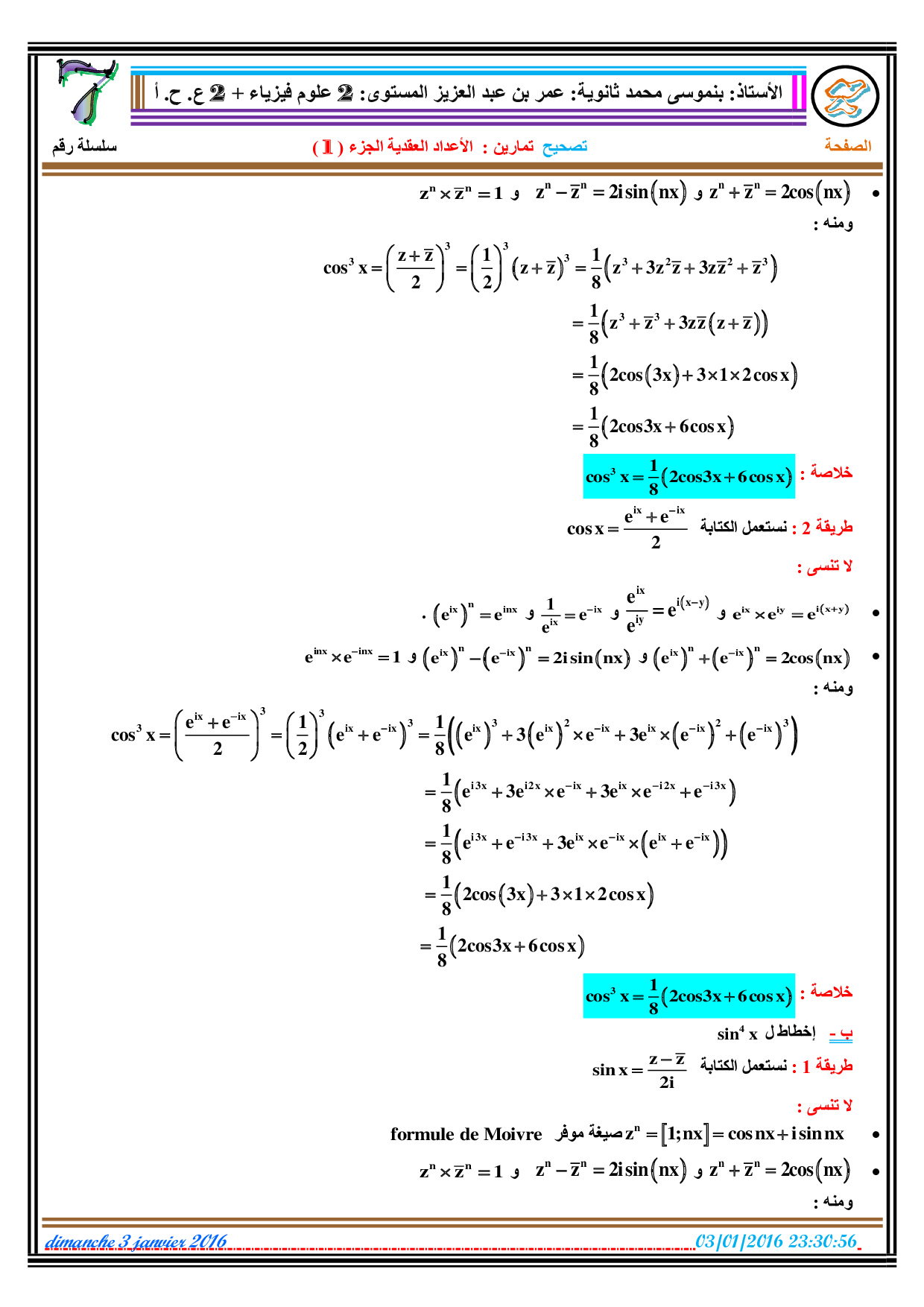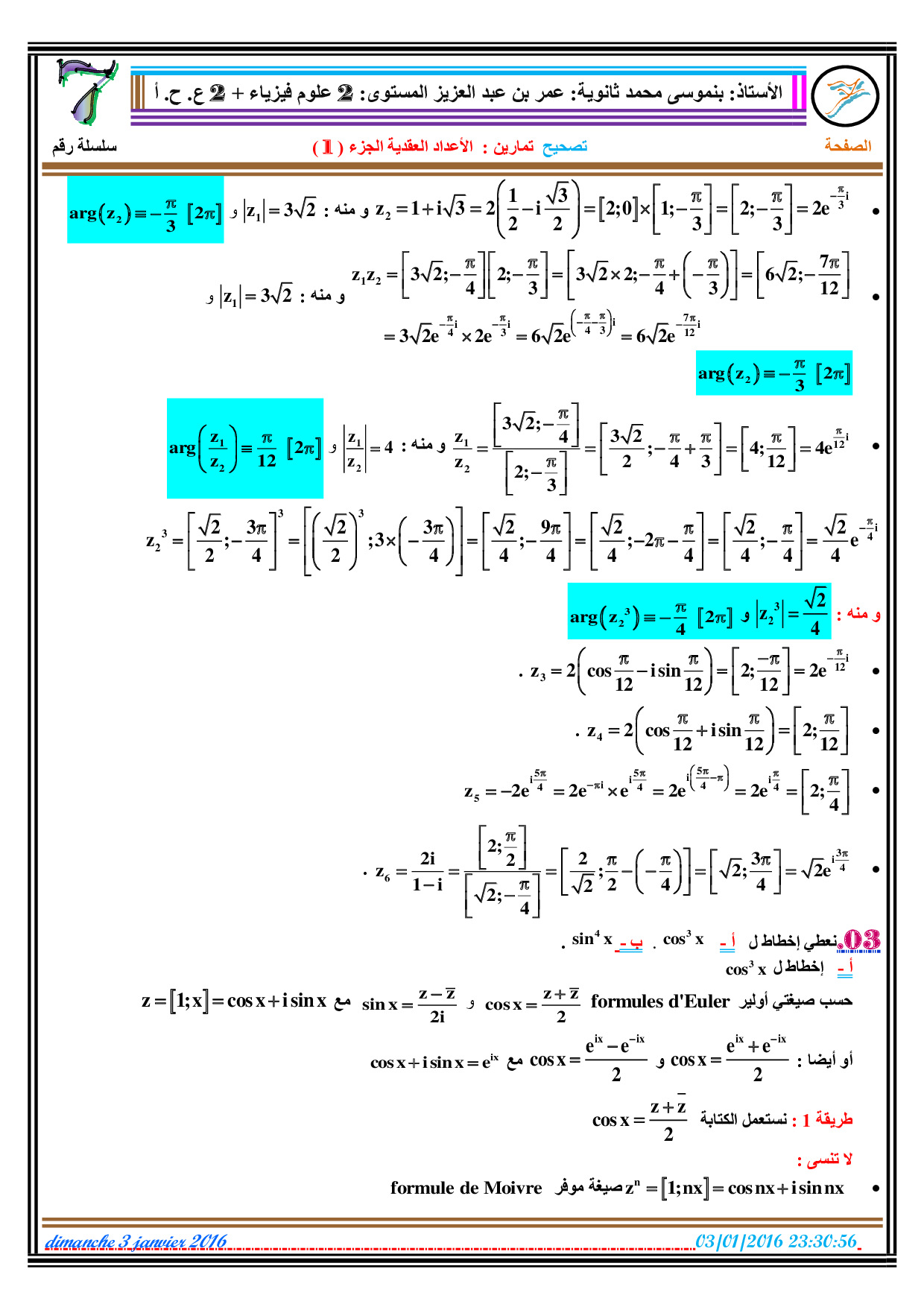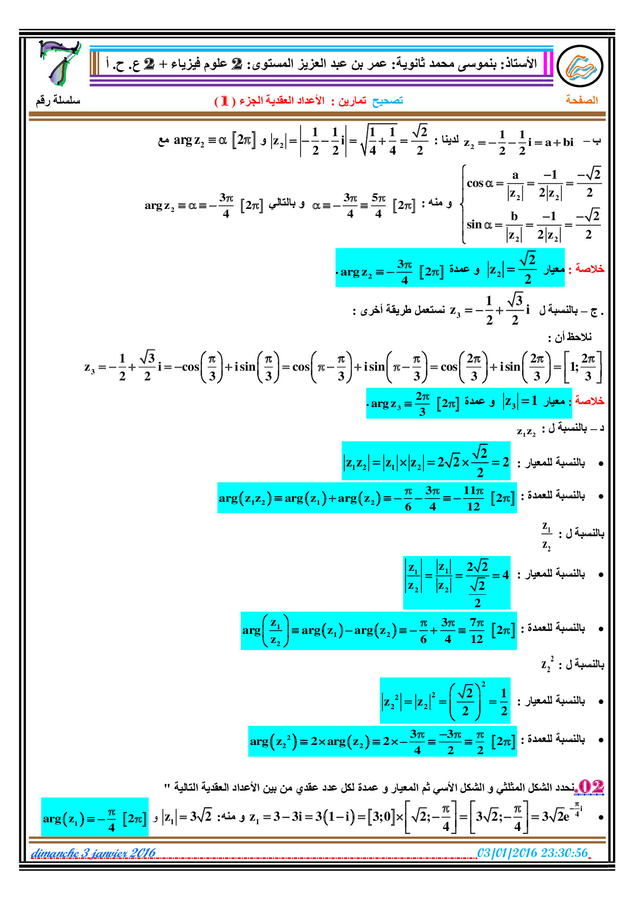 الأعداد العقدية 1 - تصحيح سلسلة التمارين 1