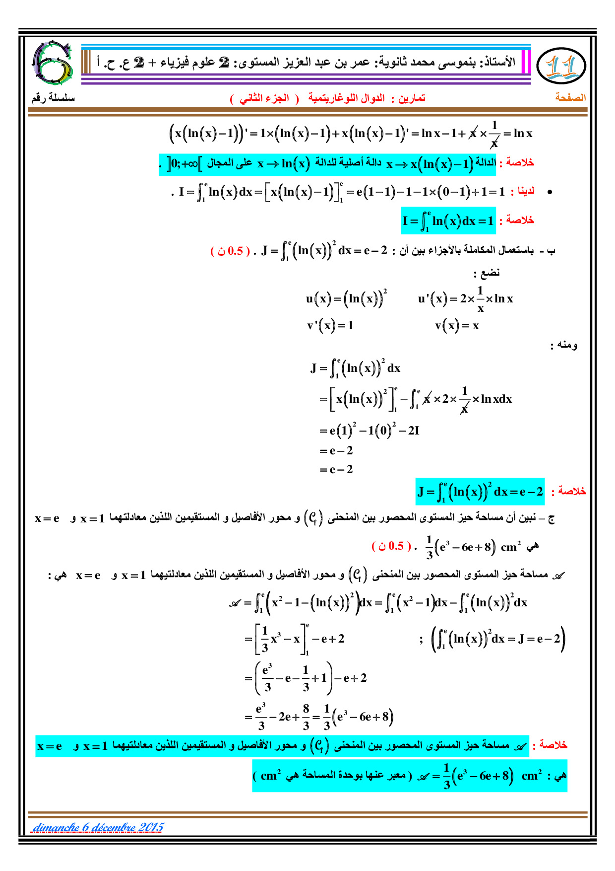 الدوال اللوغاريتمية - تصحيح سلسلة التمارين 2