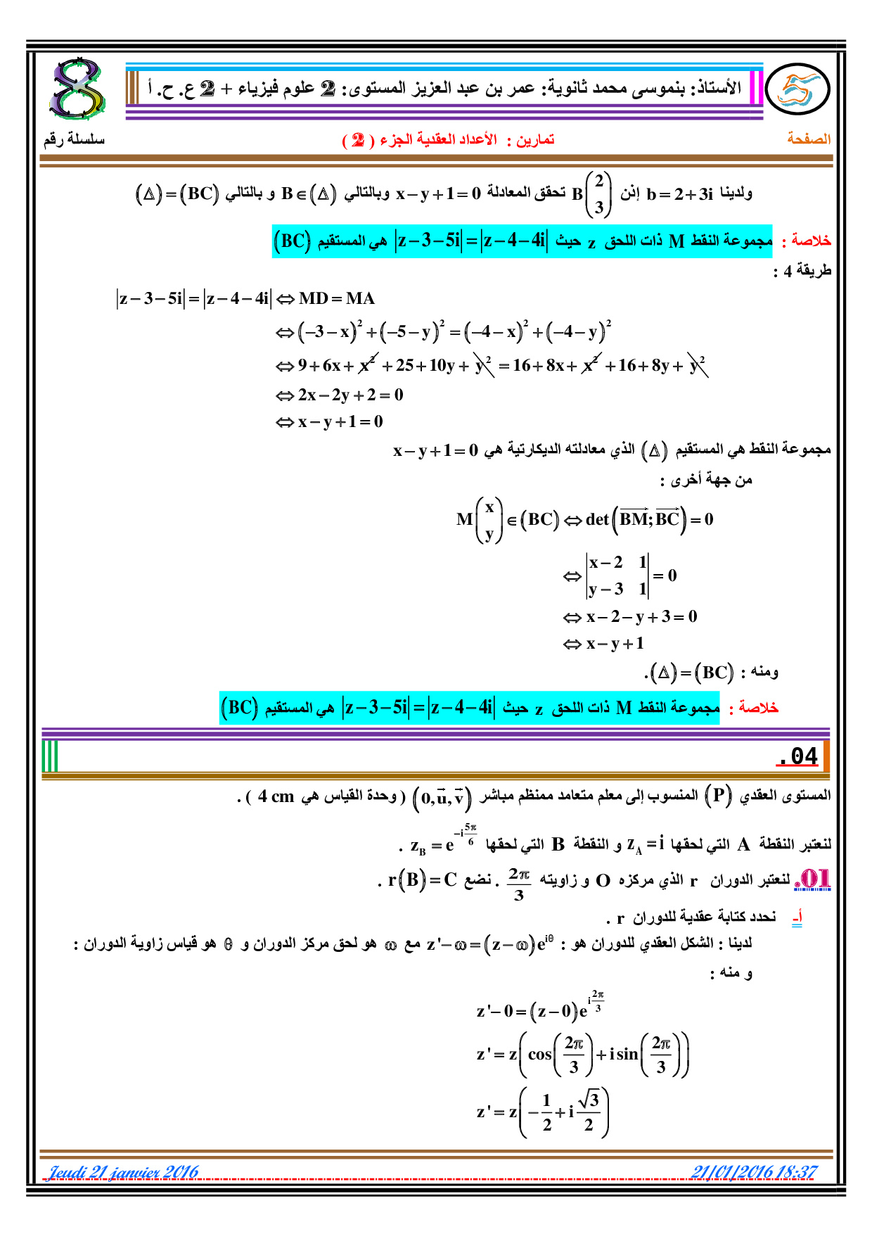 الأعداد العقدية (الجزء الثاني)