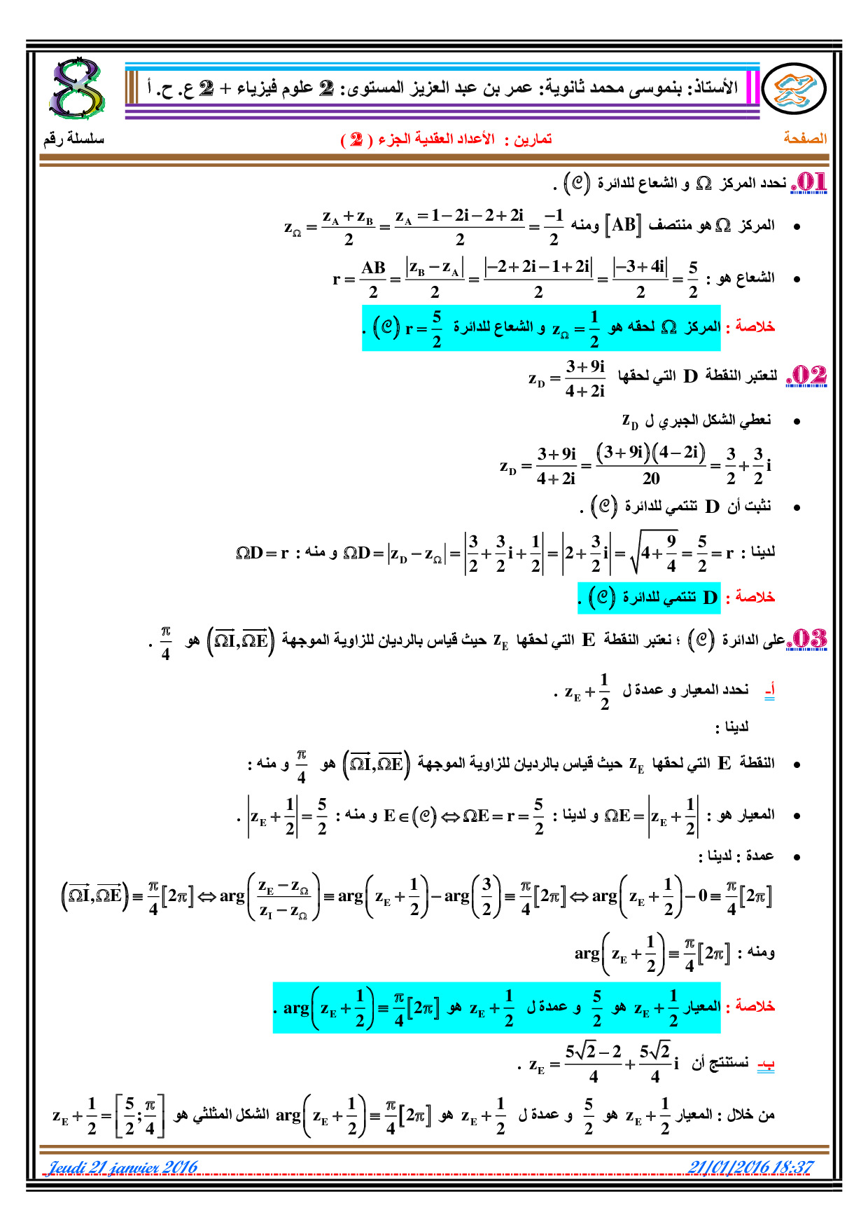 الأعداد العقدية 2 - تصحيح سلسلة التمارين 1