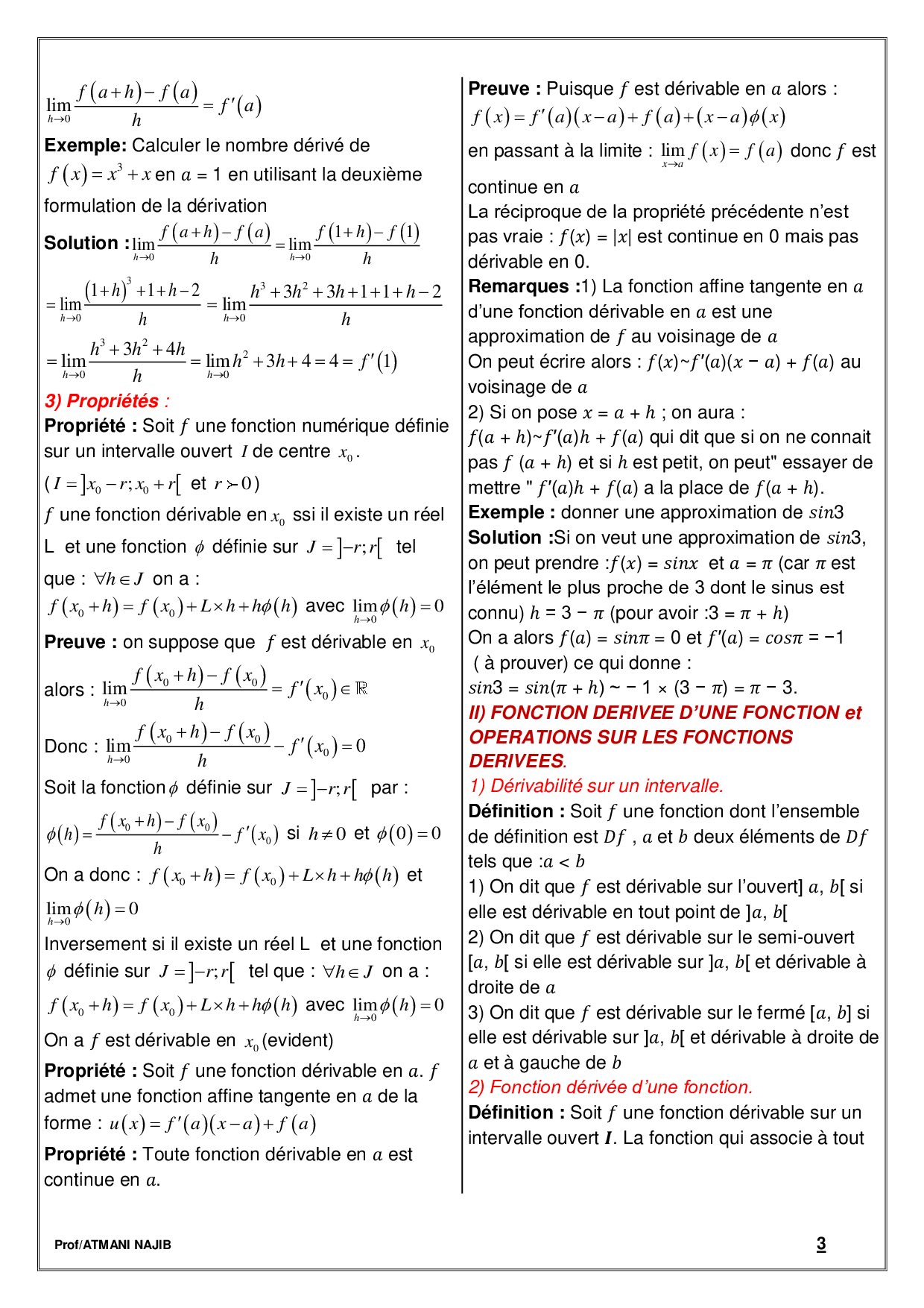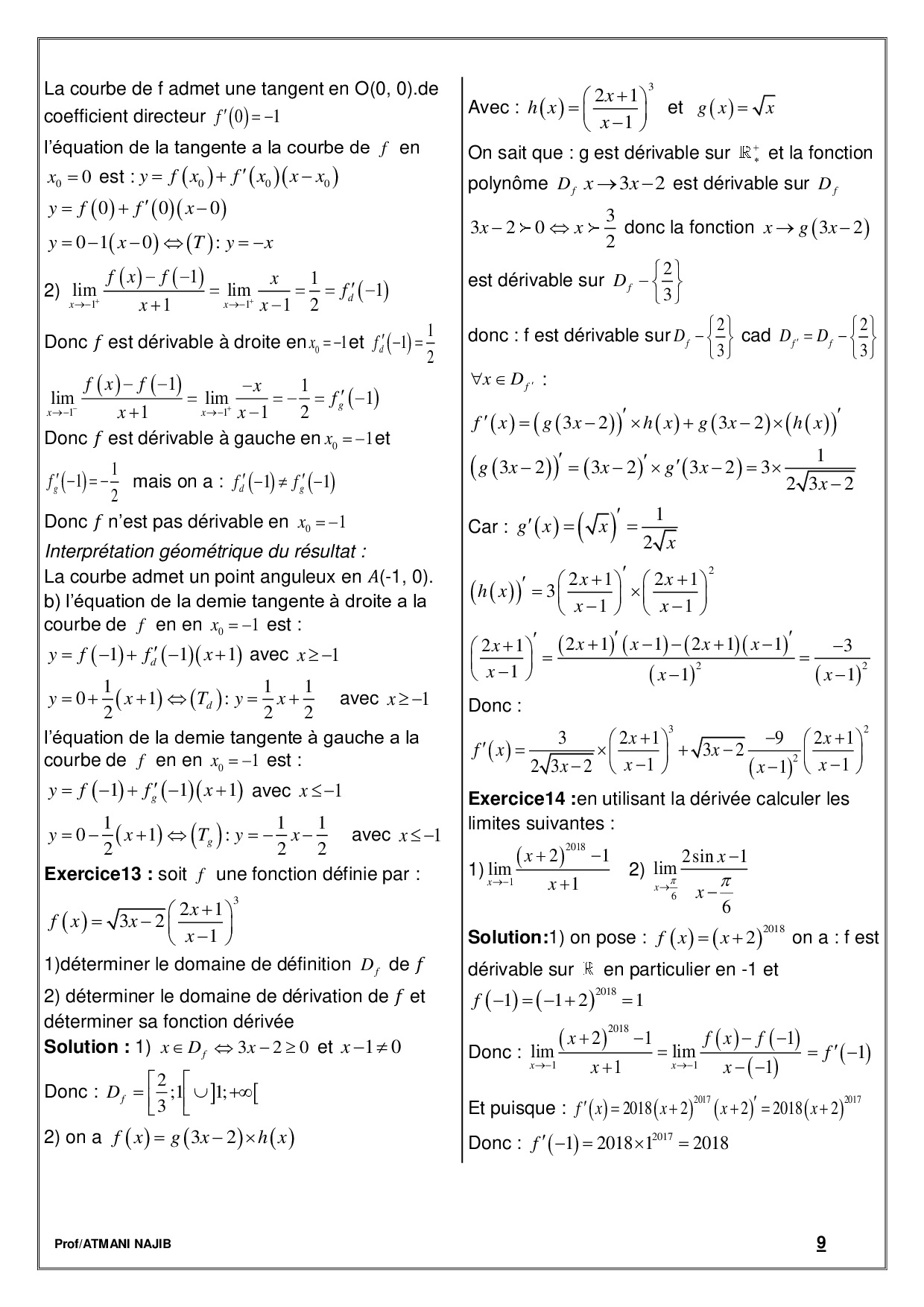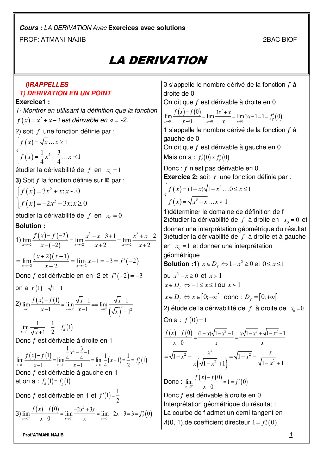 Dérivation et étude des fonctions - Cours et exercices corrigés
