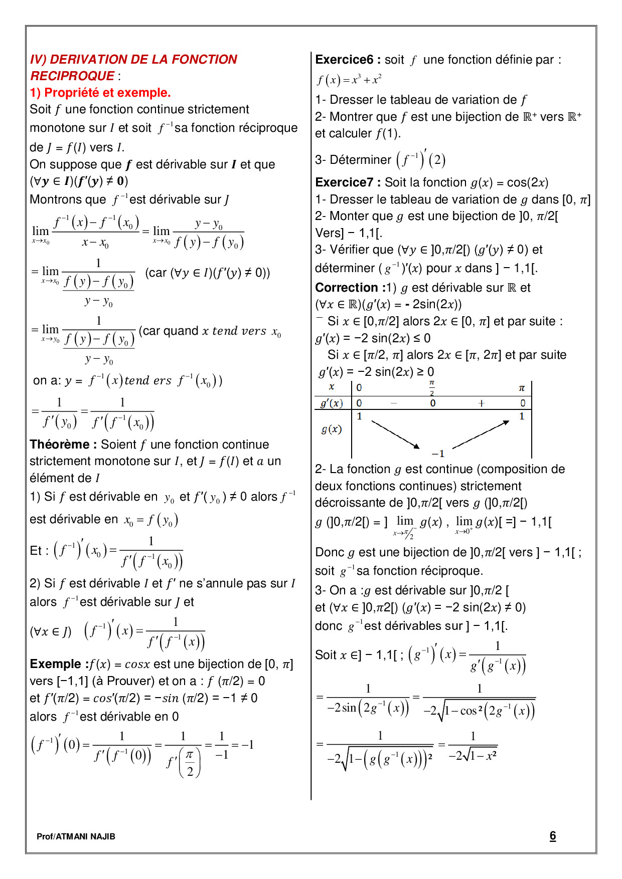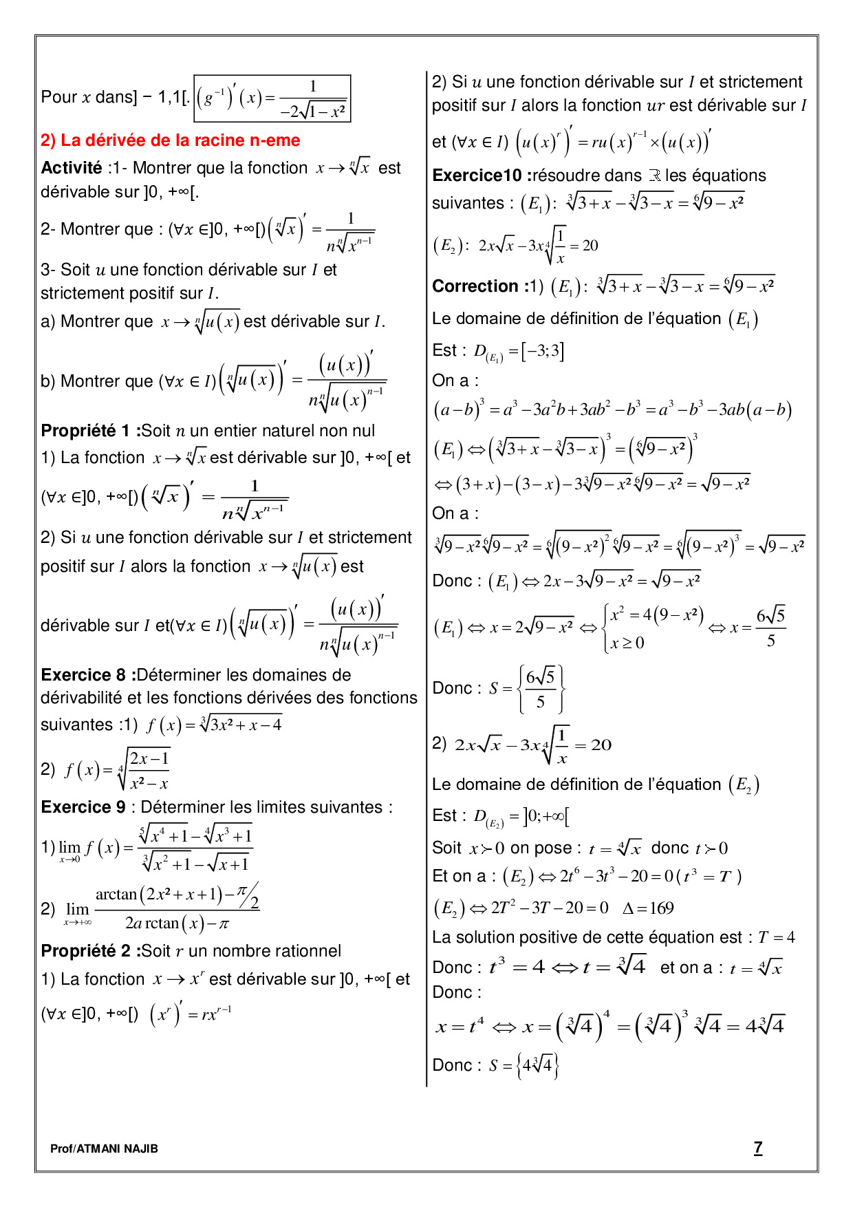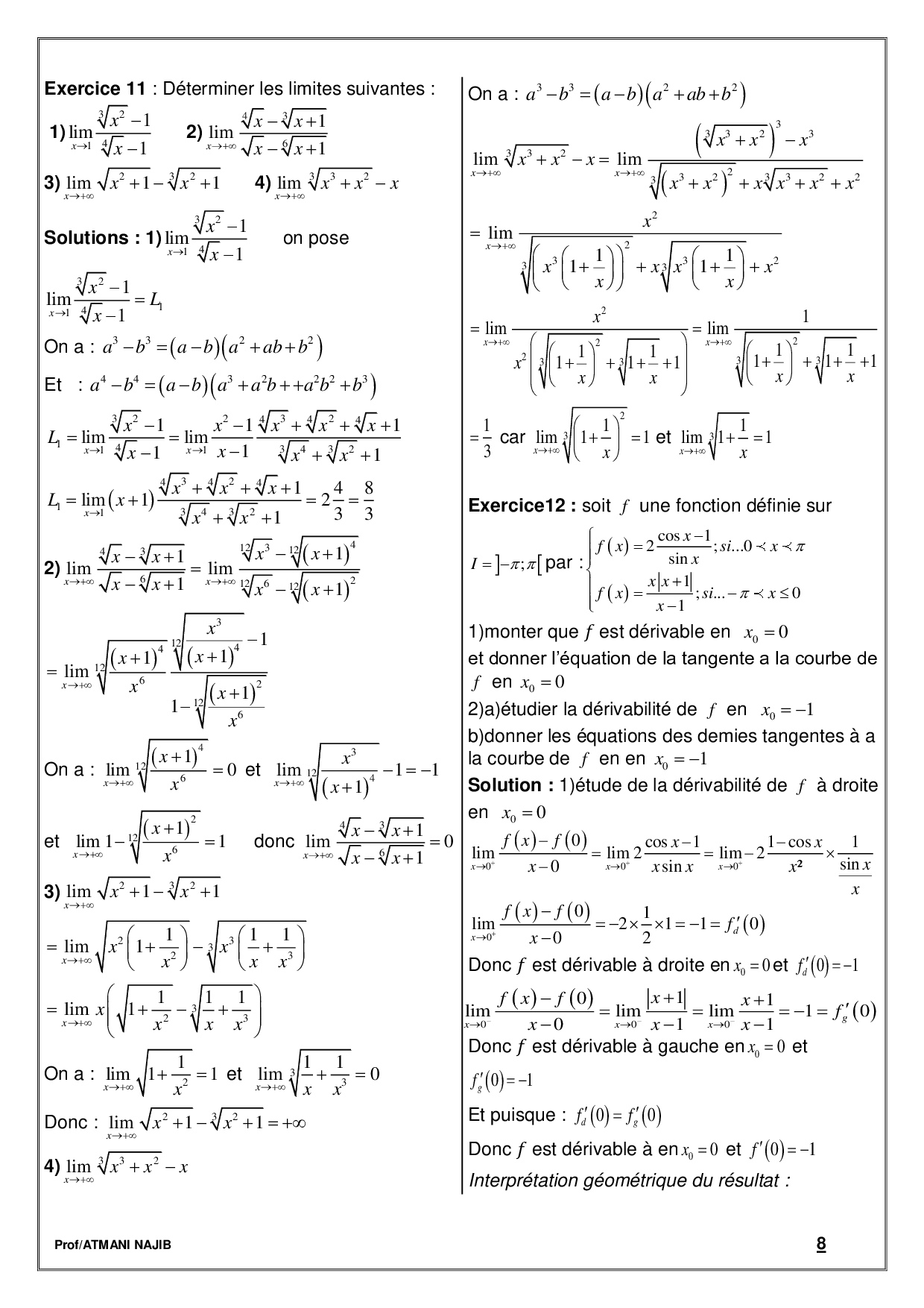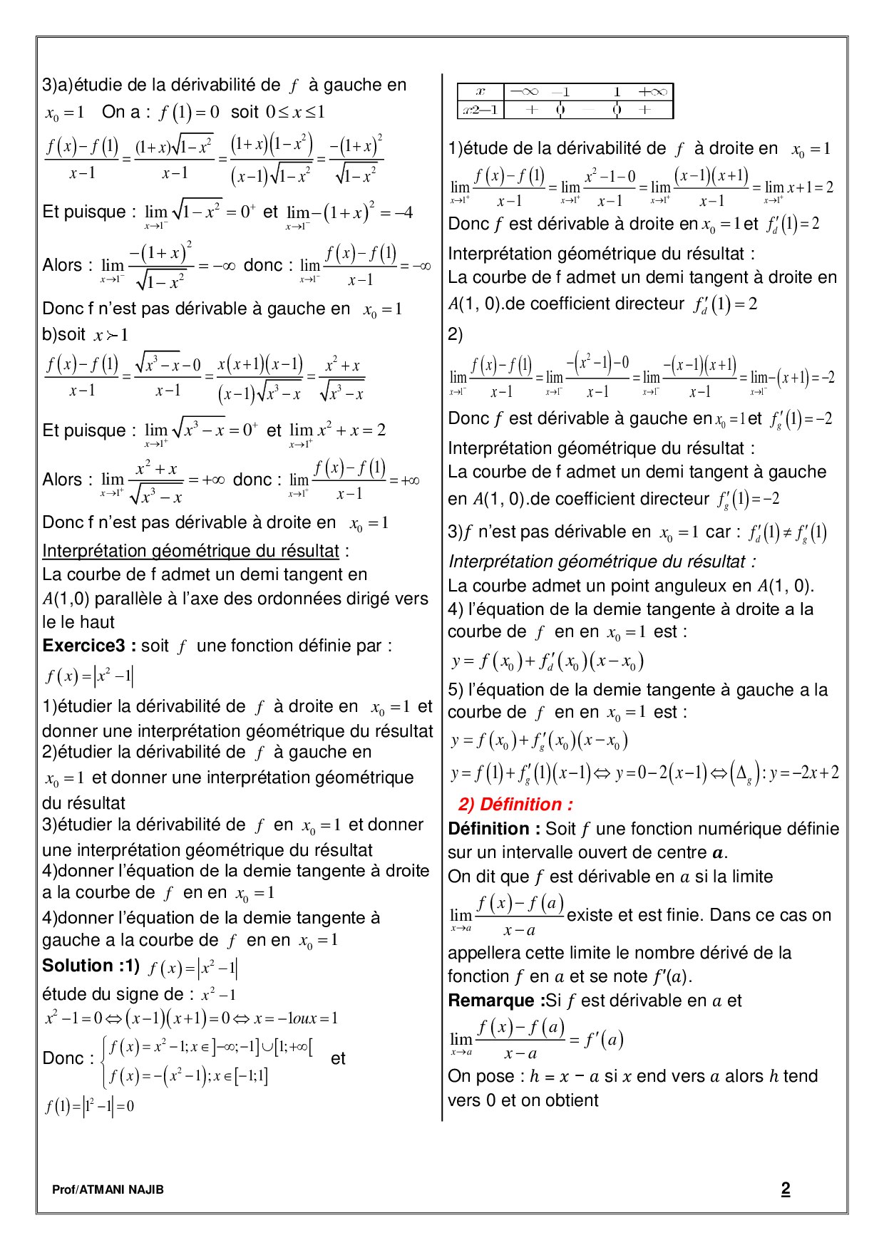 Dérivation et étude des fonctions - Cours et exercices corrigés