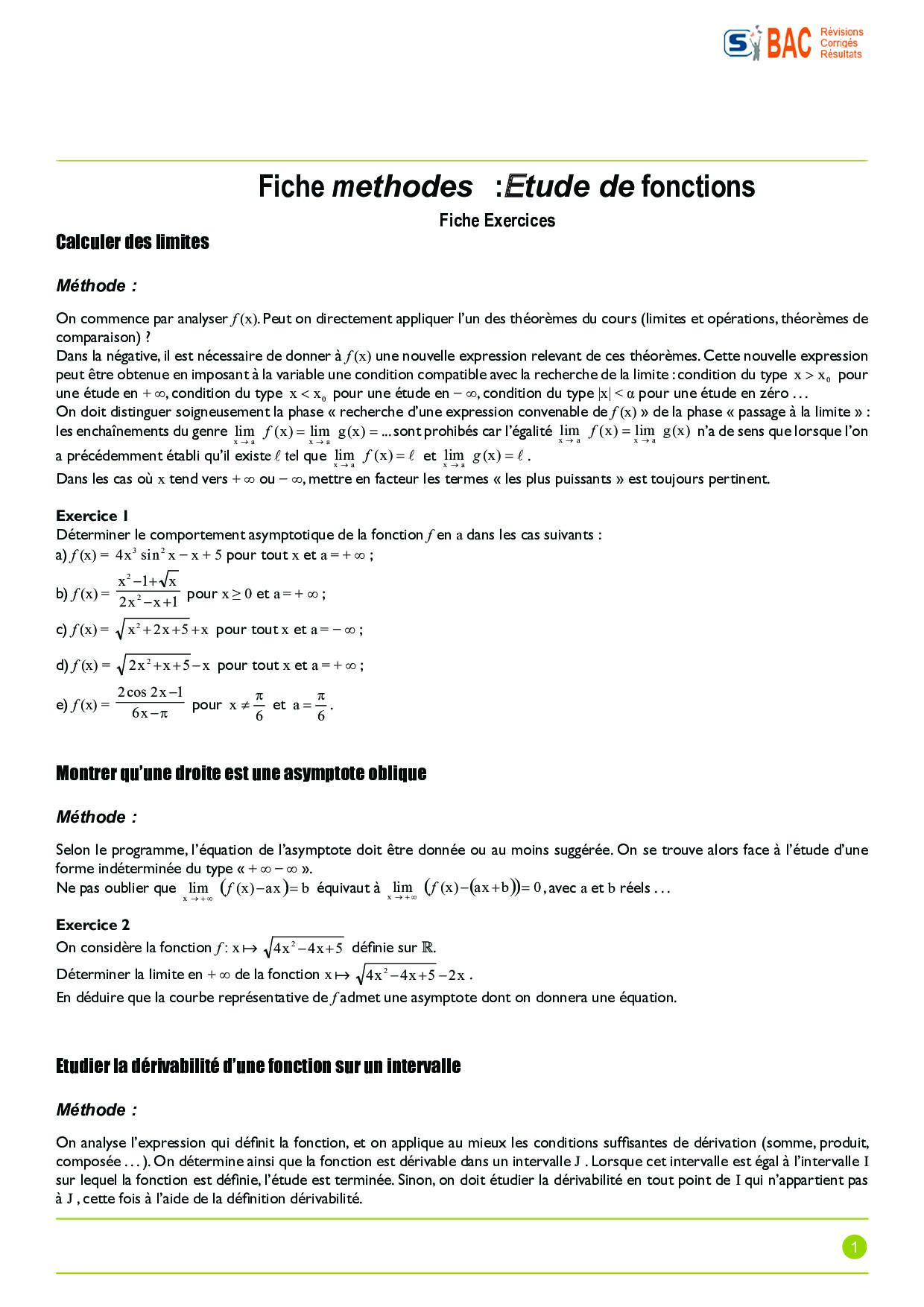 Étude des fonctions - Fiche méthode 2