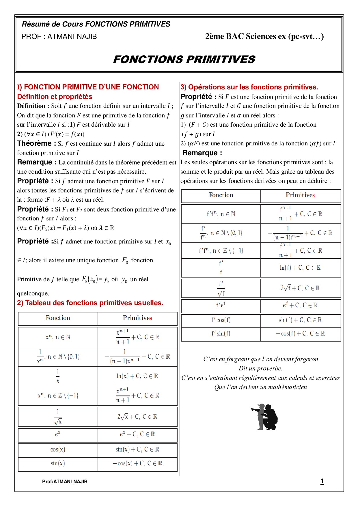 Fonctions primitives - Résumé de cours 1