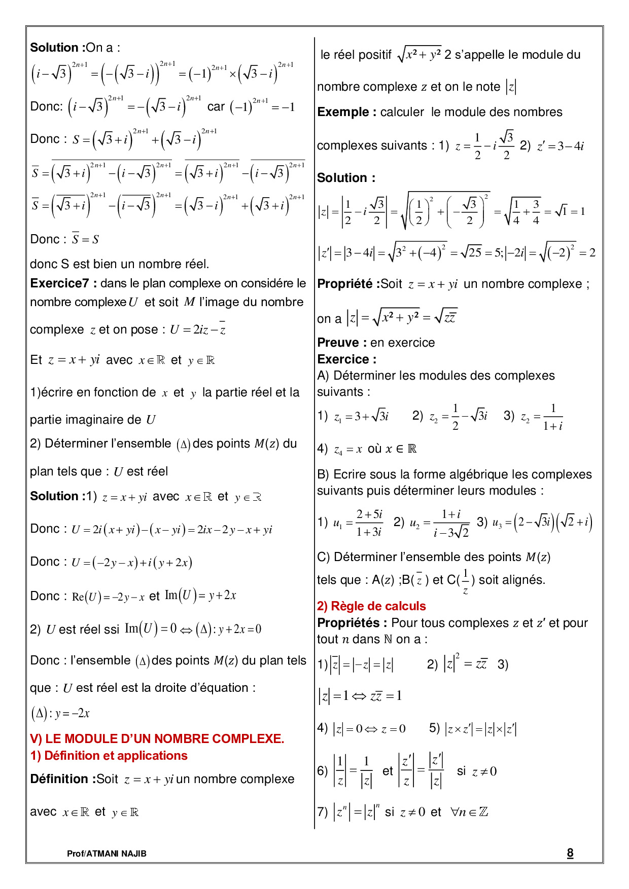 Nombres complexes 1 - Cours et exercices corrigés