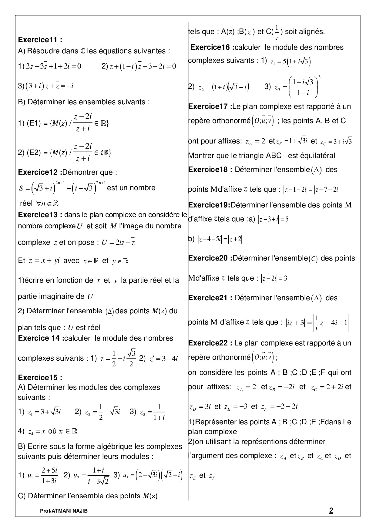Nombres complexes 1 - Série d'exercices 1