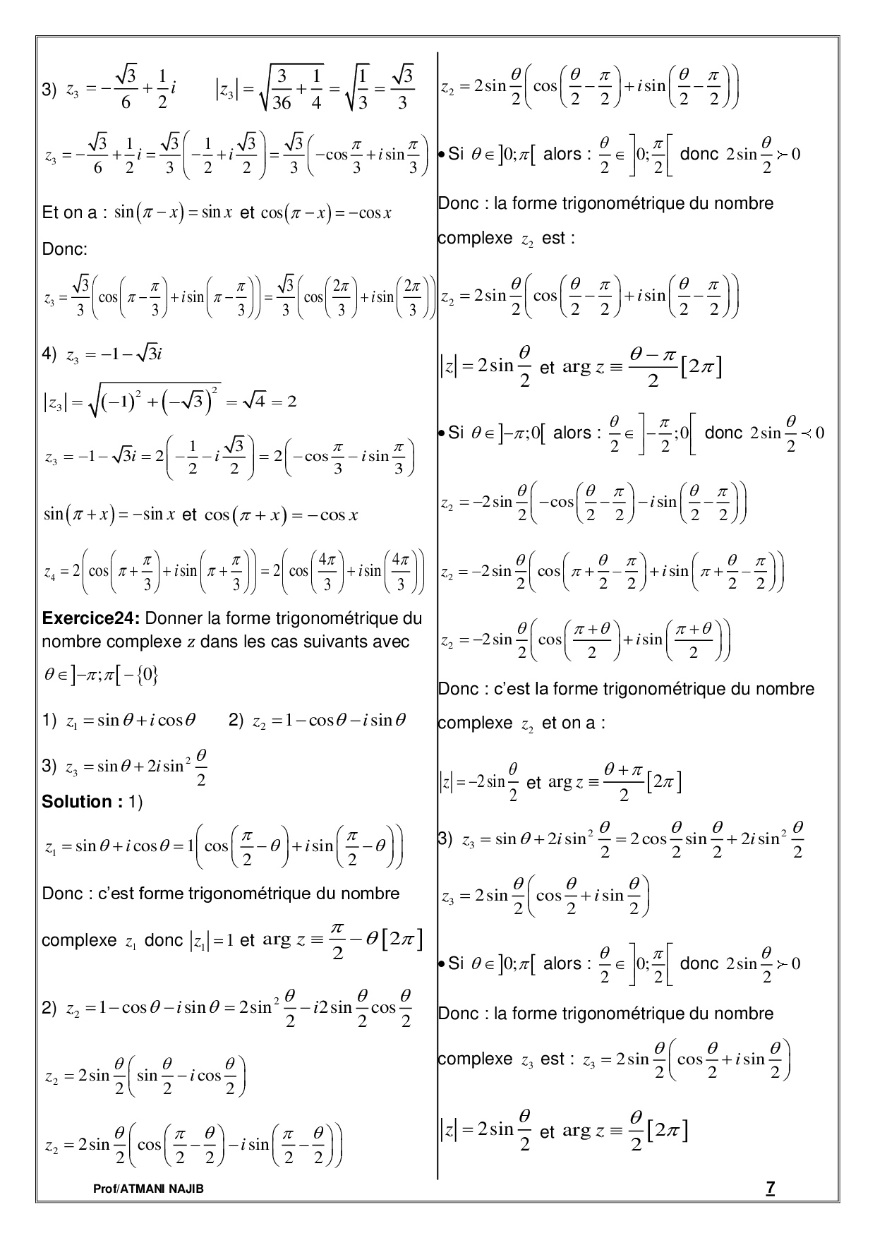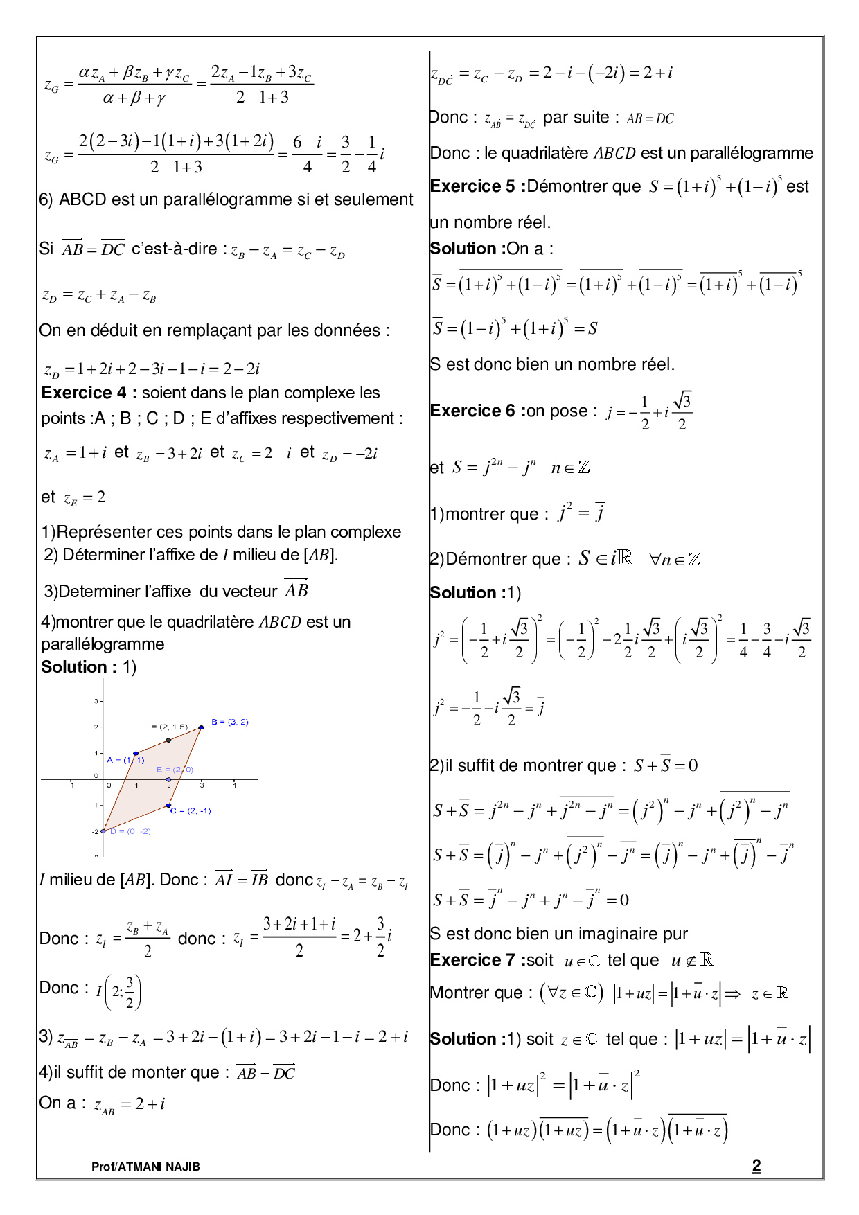 Nombres complexes 1 - Corrigé série d'exercices 1