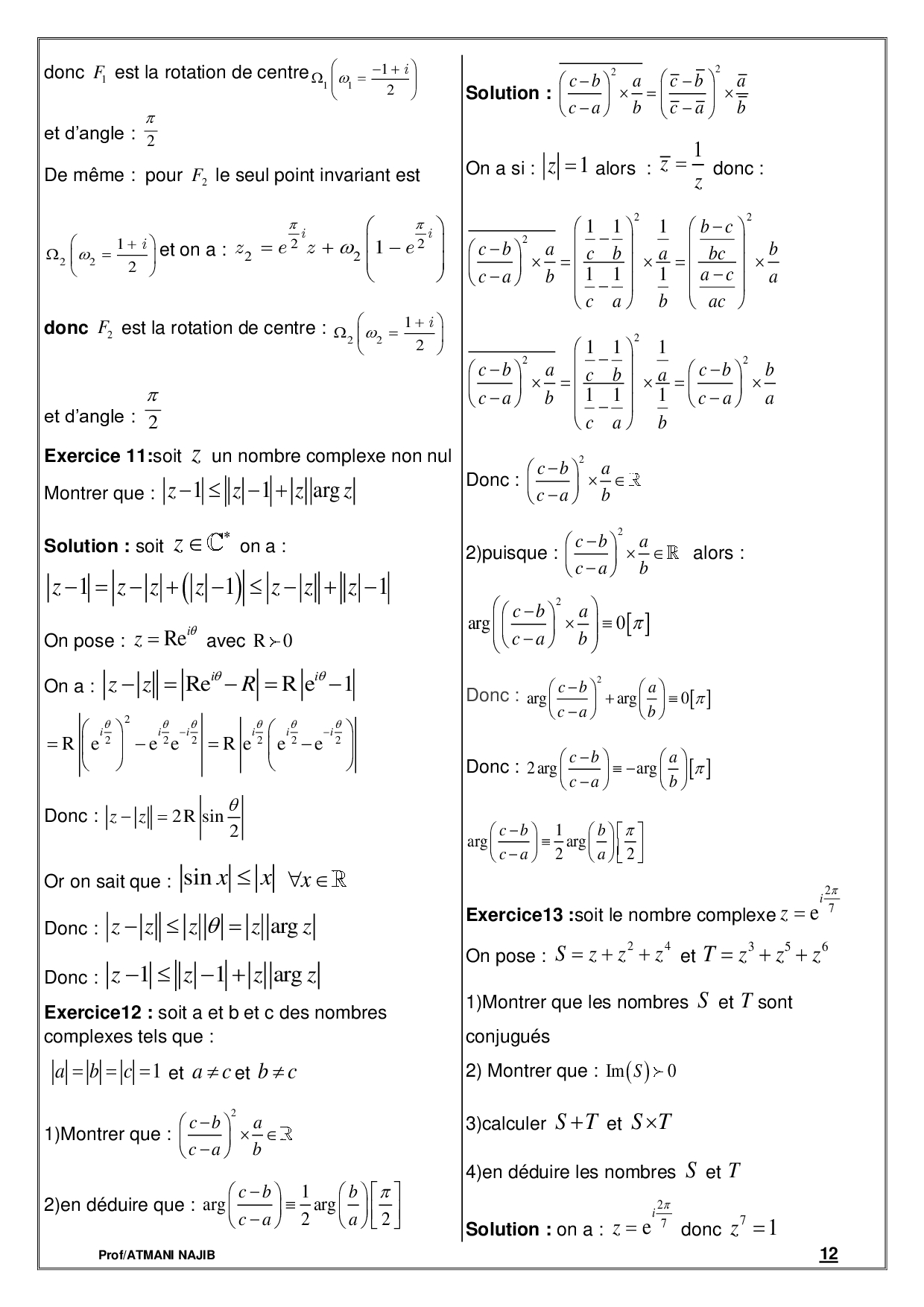 Nombres complexes 2 - Cours et exercices corrigés