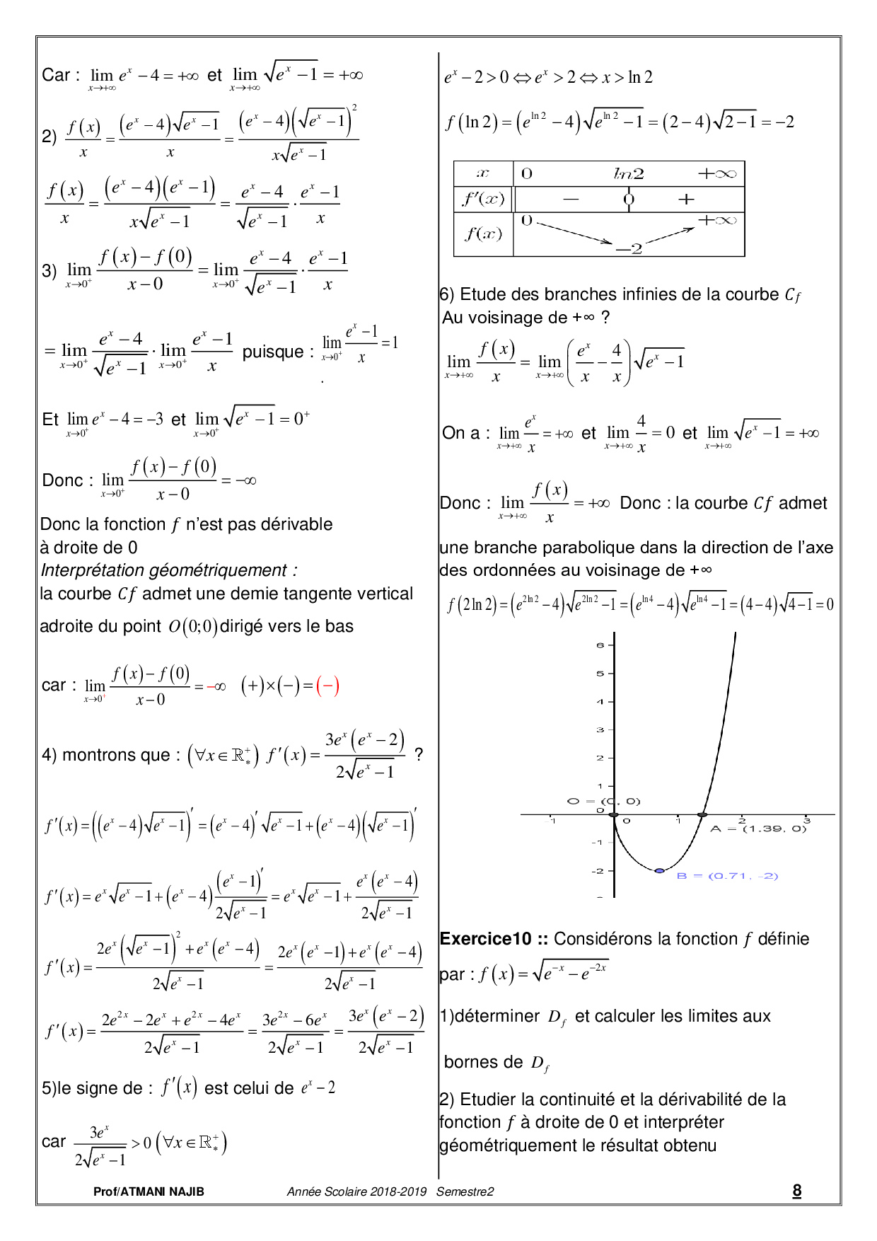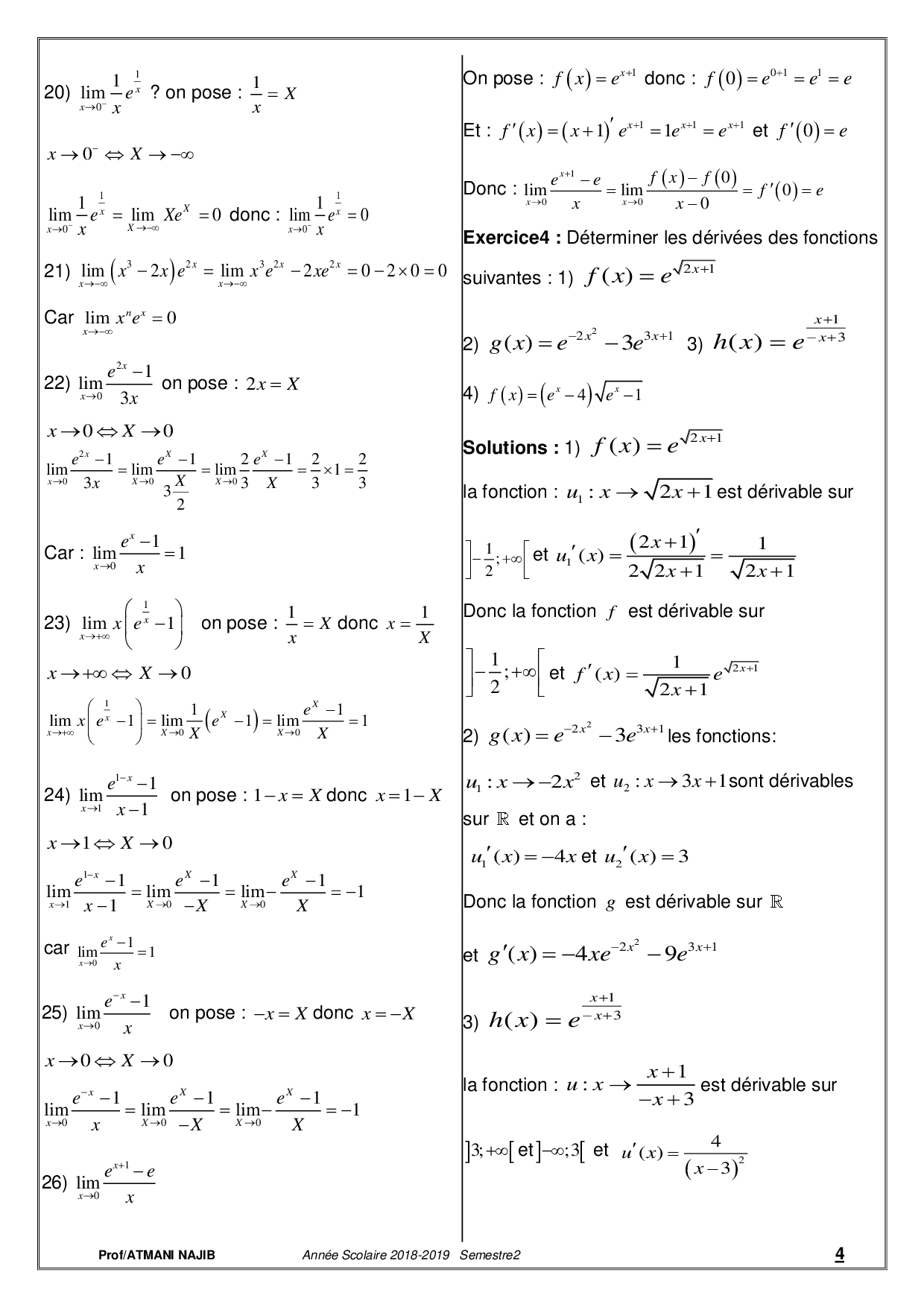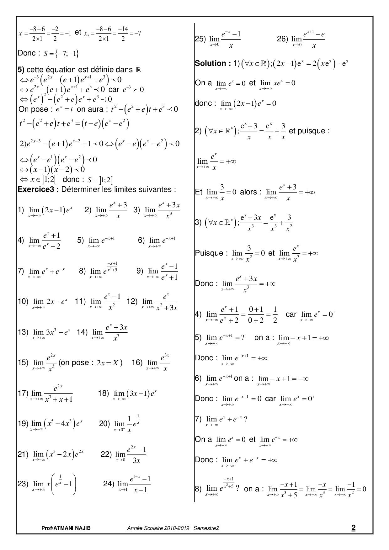 Fonctions exponentielles - Corrigé série d'exercices 1