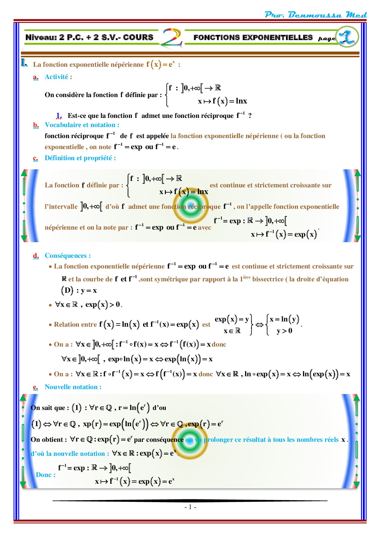 Fonctions exponentielles - Cours 1