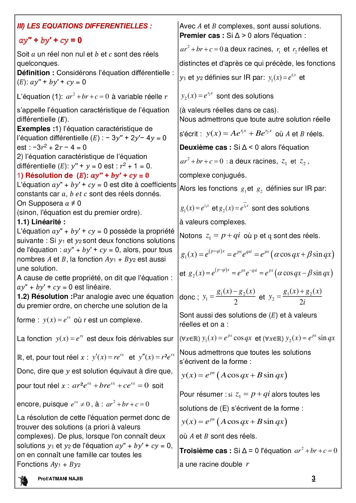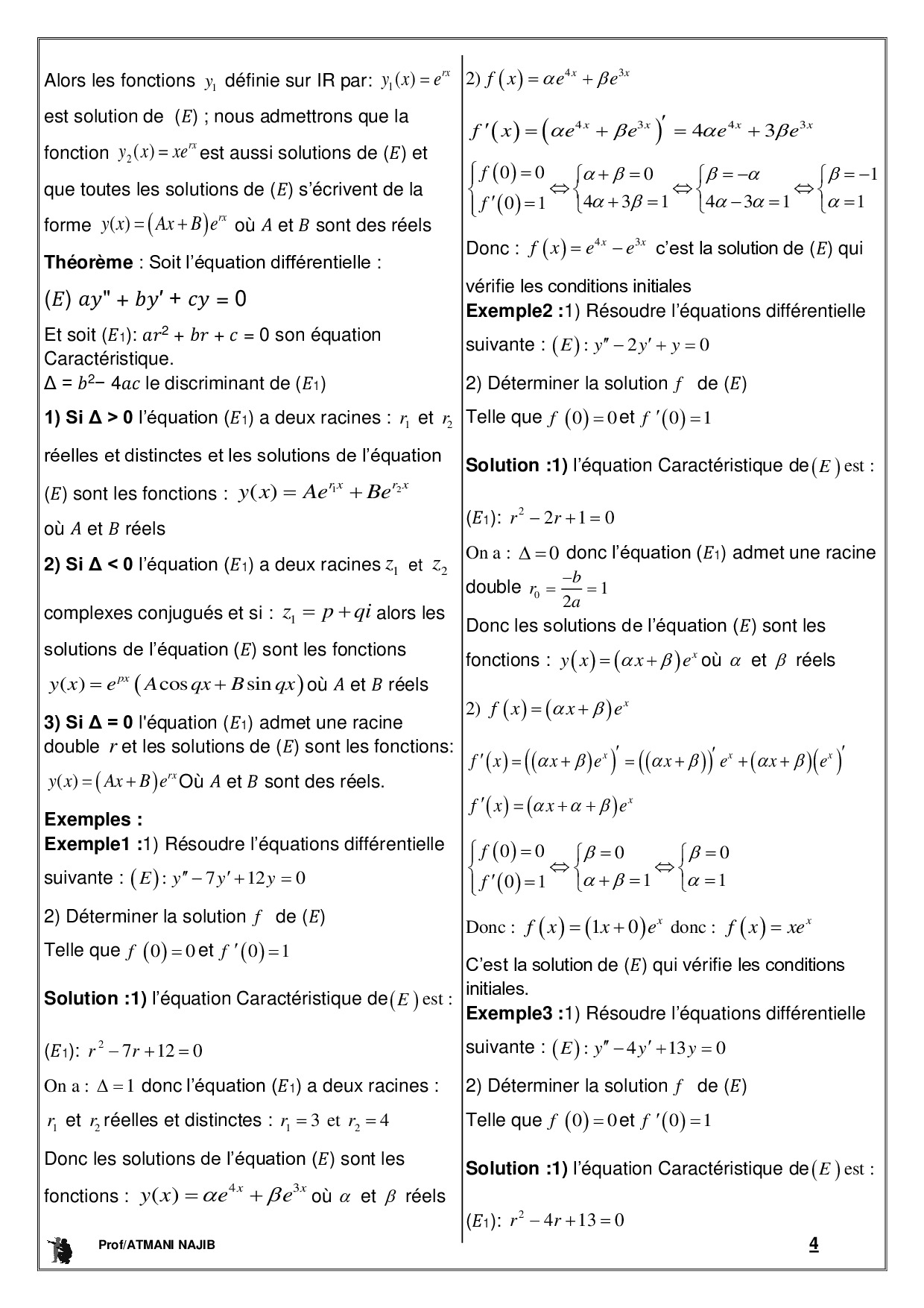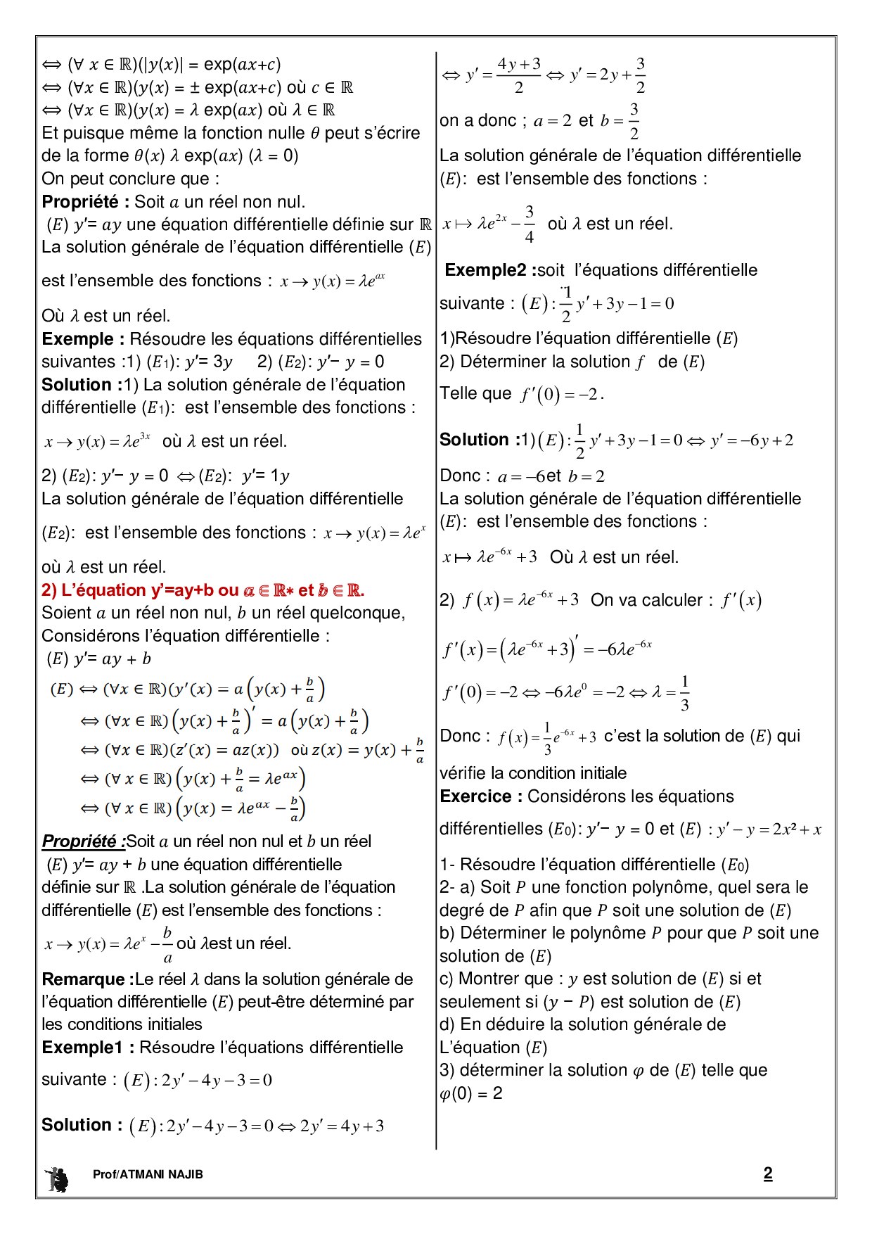 Équations différentielles - Cours et exercices corrigés