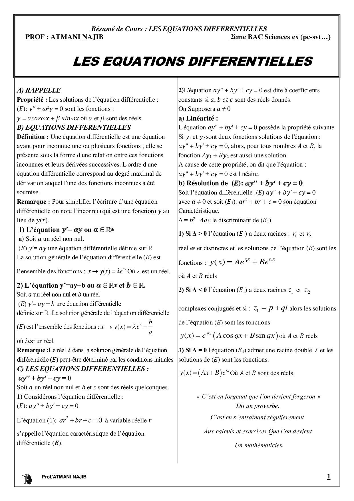 Équations différentielles - Résumé de cours 1