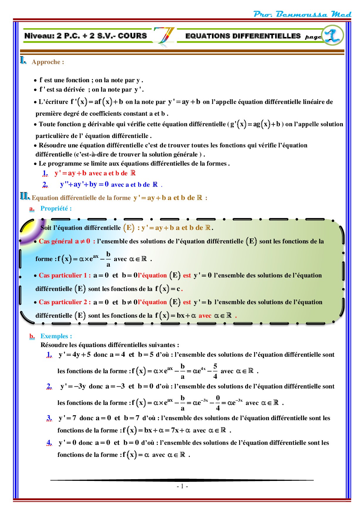 Équations différentielles - Cours 1