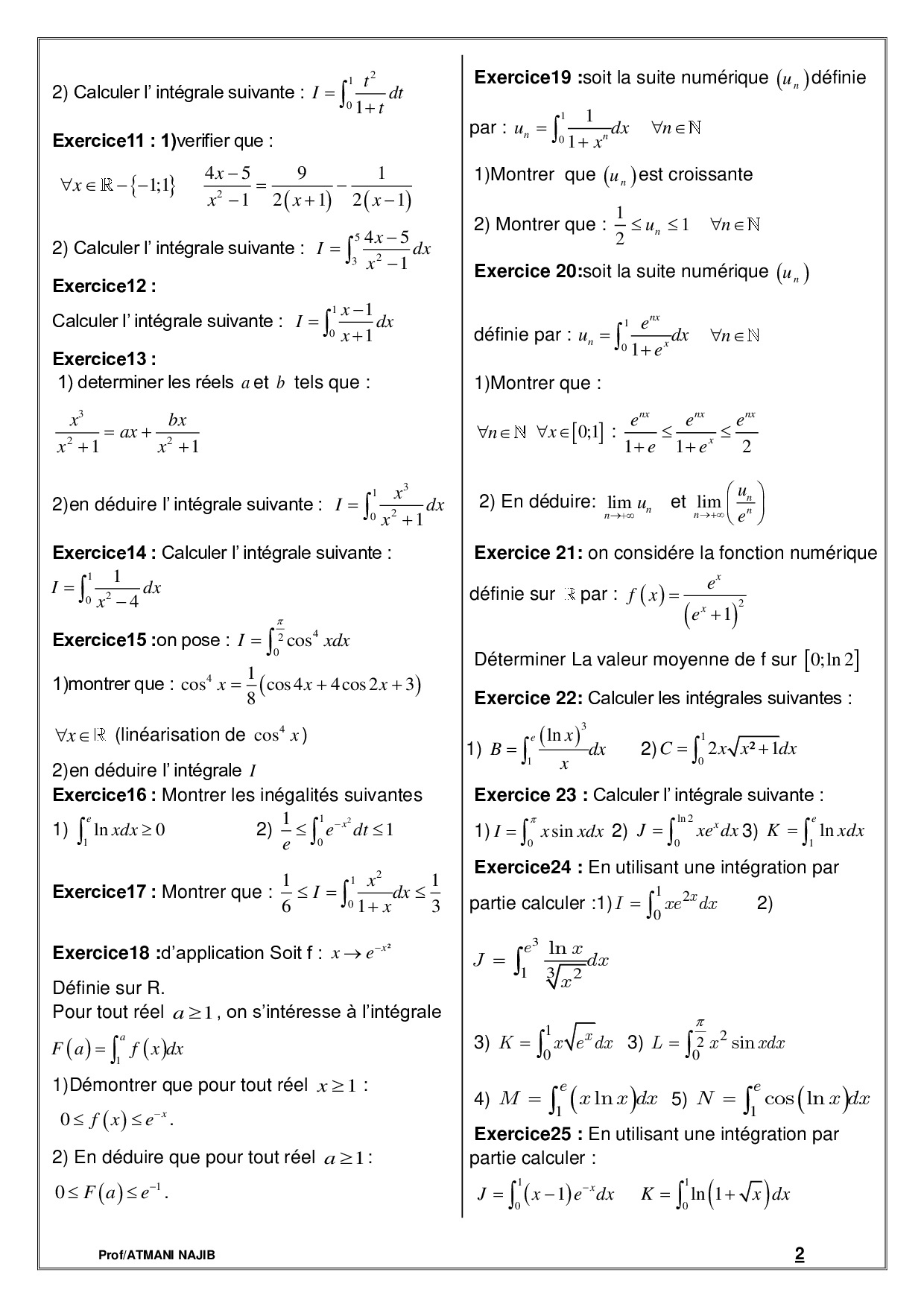Calcul intégral - Série d'exercices 1