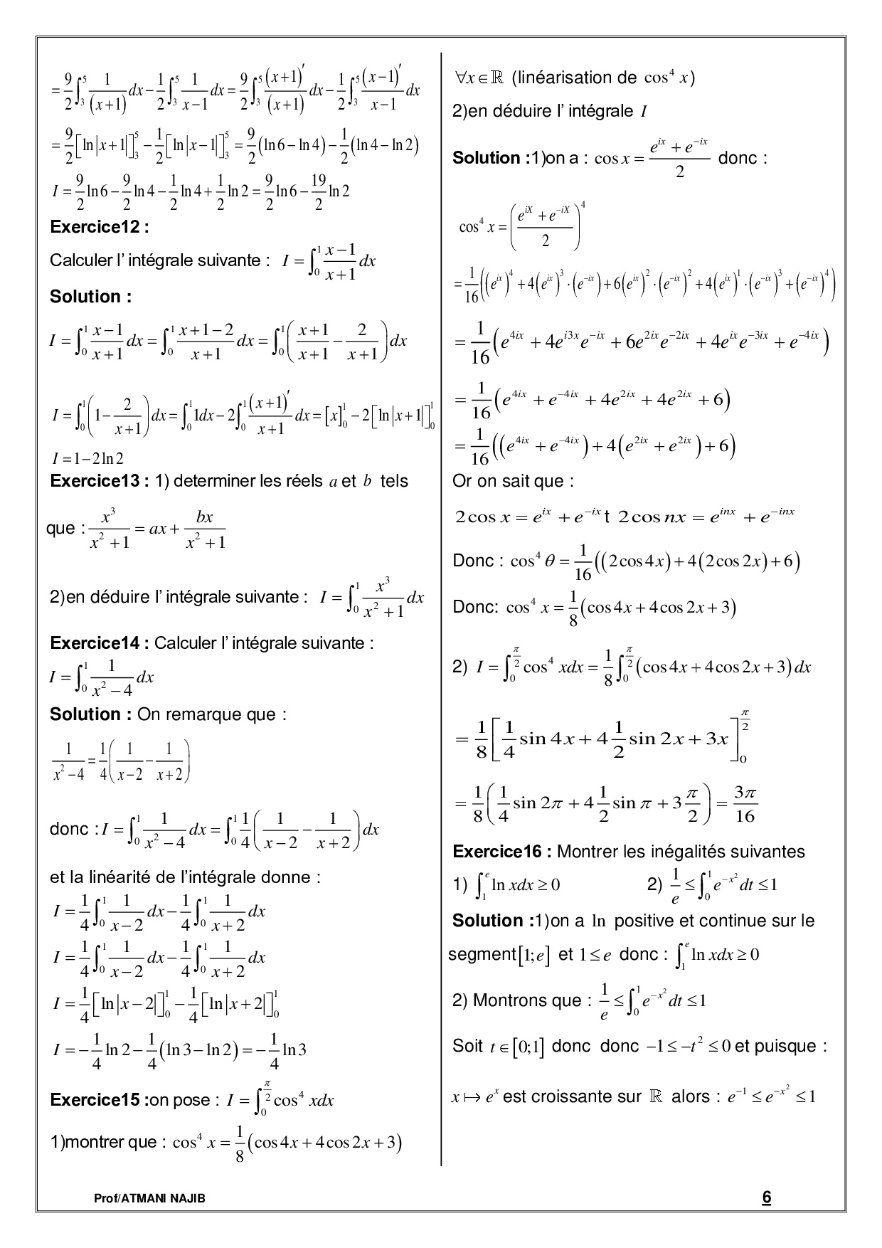 Calcul intégral - Corrigé série d'exercices 1
