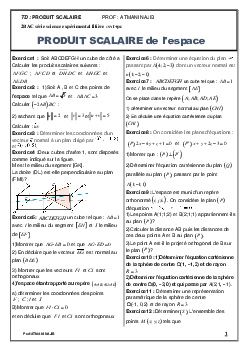 Produit scalaire dans l’espace - Série d'exercices 1