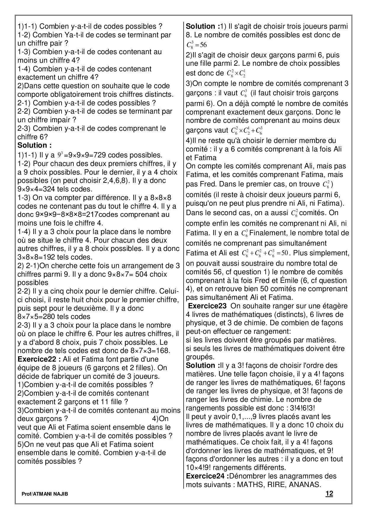 Dénombrement - Cours et exercices corrigés