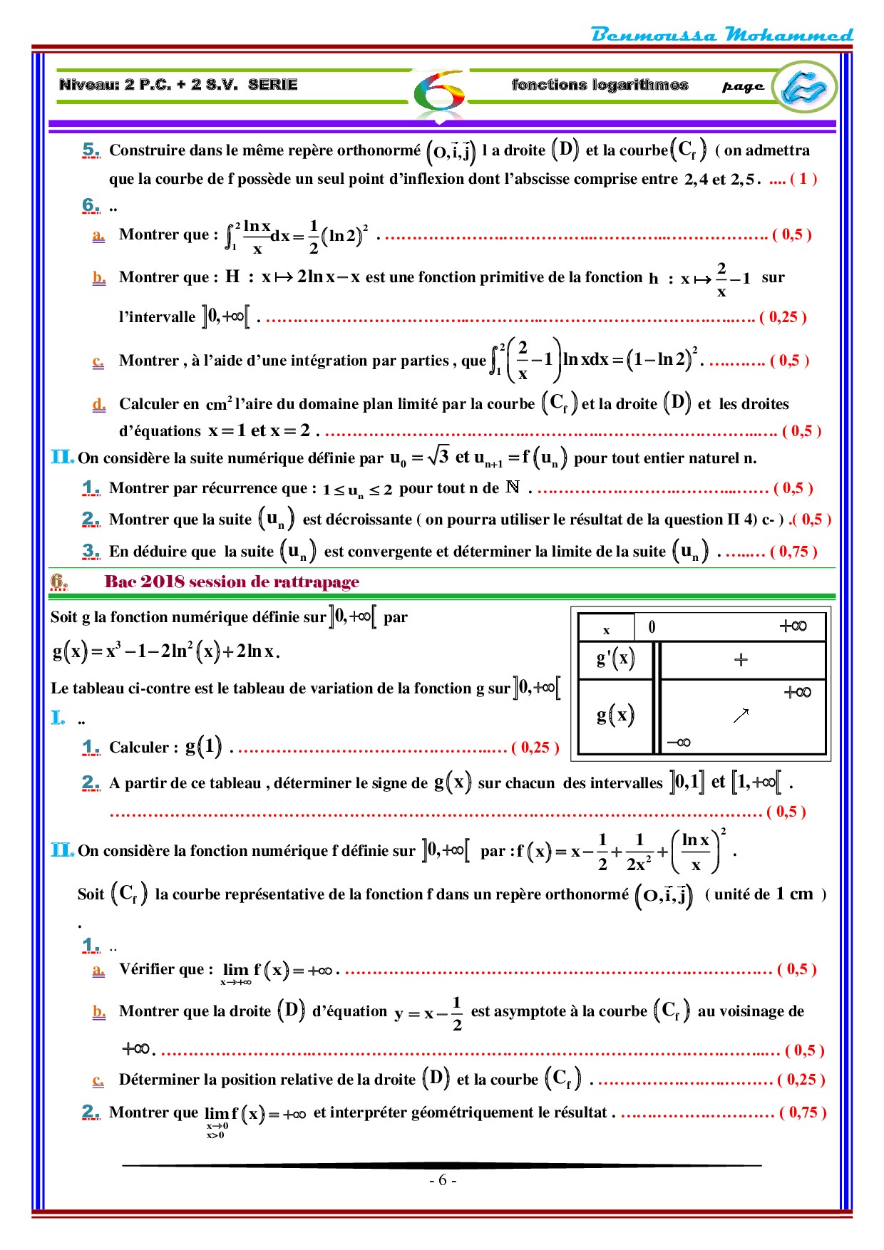 Fonctions logarithmiques - Exercices non corrigés 1