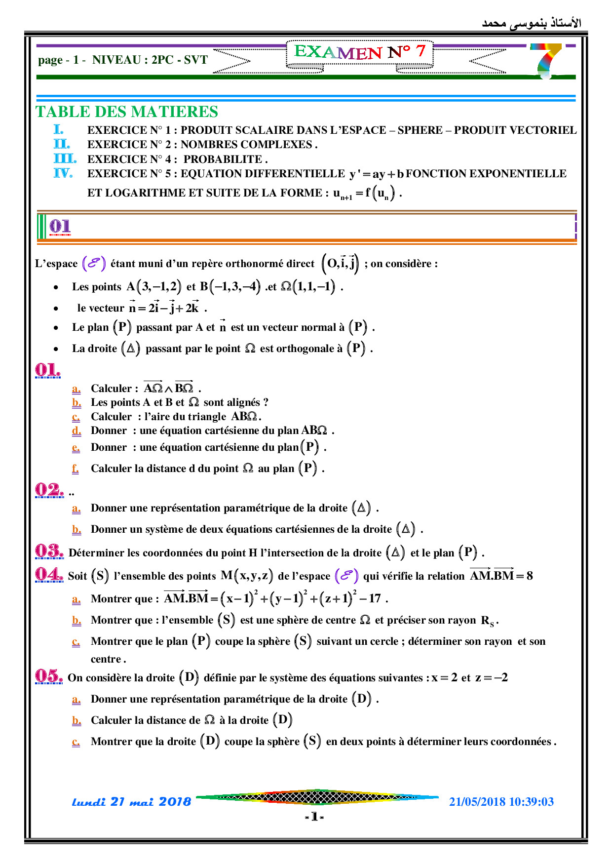 Examen Simili 7 - Maths 2 SPC-SVT