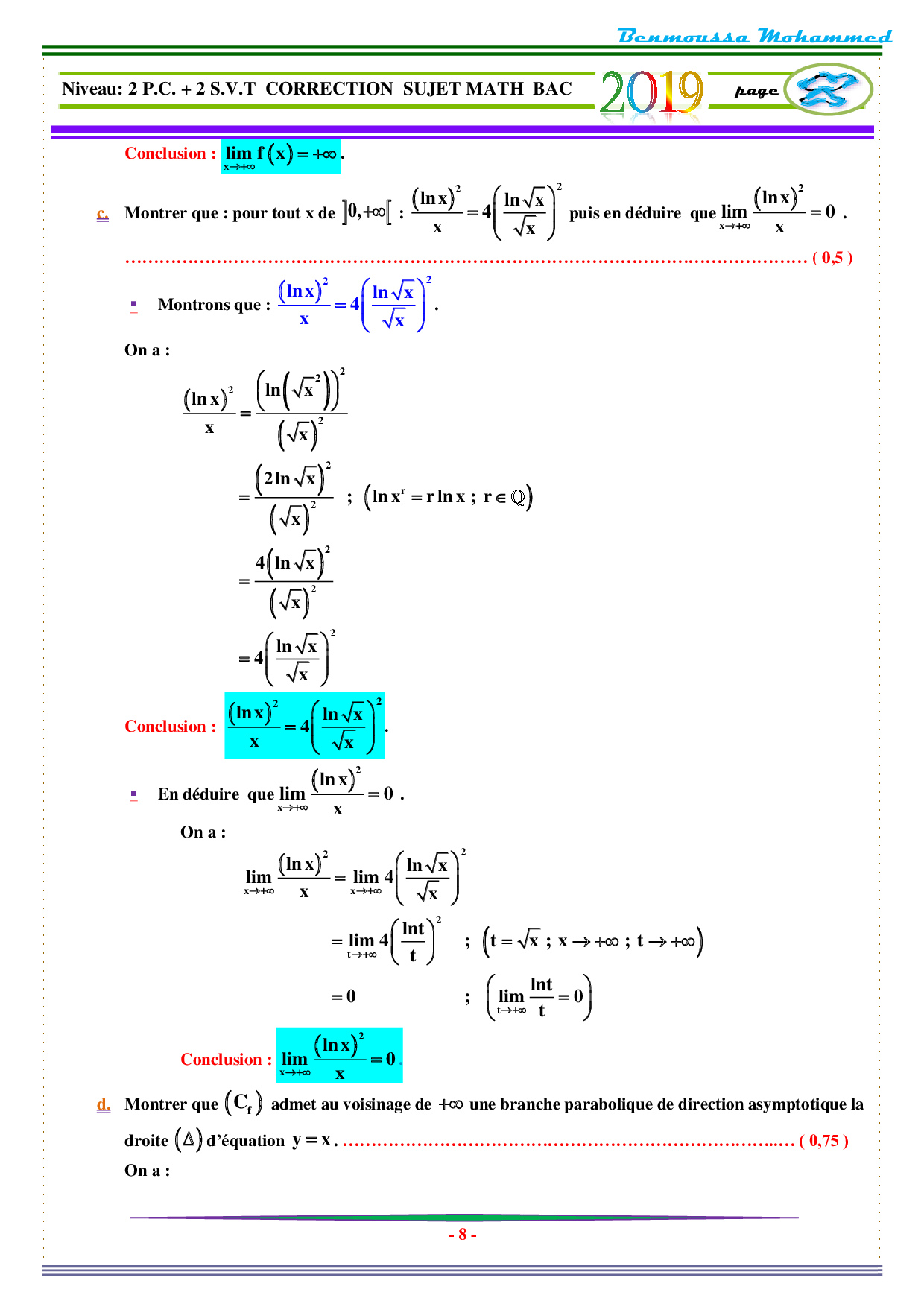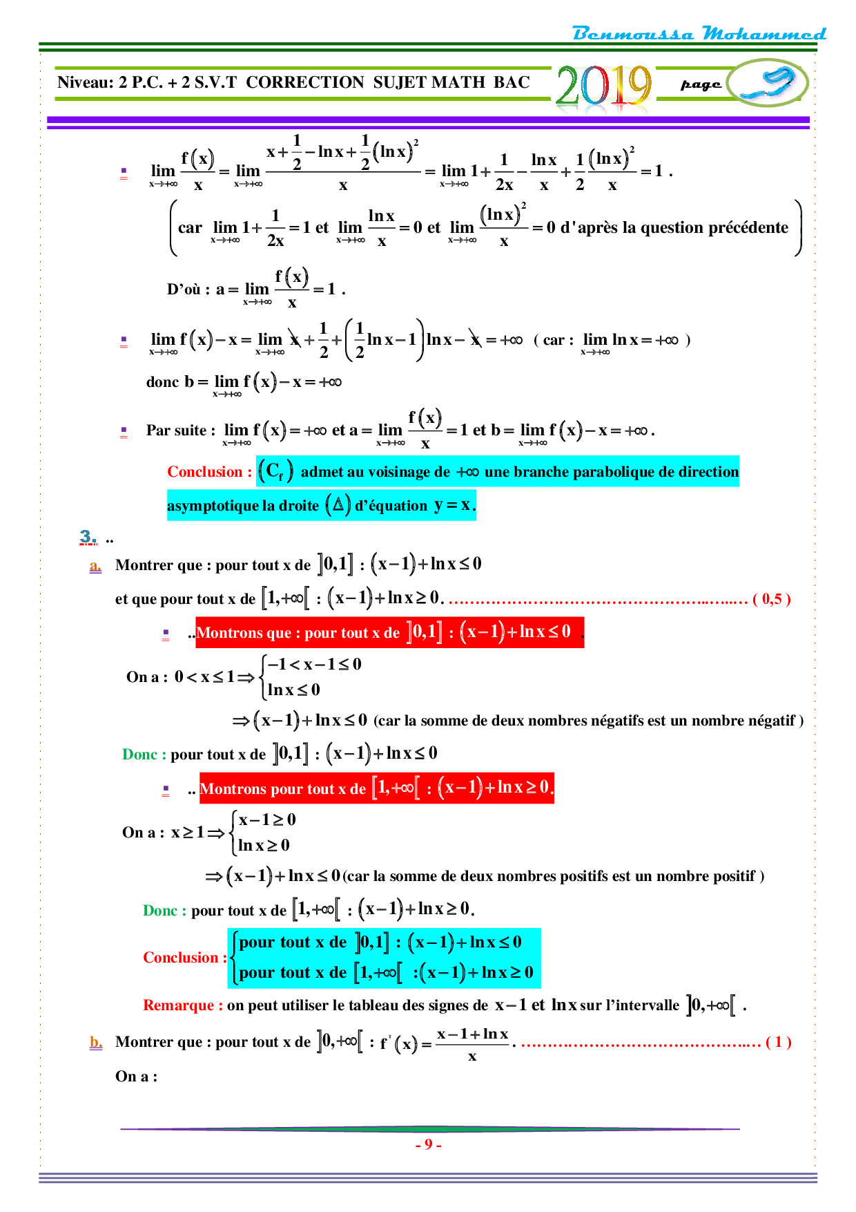 Examen National Maths Sciences et Technologies 2019 Normale - Corrigé