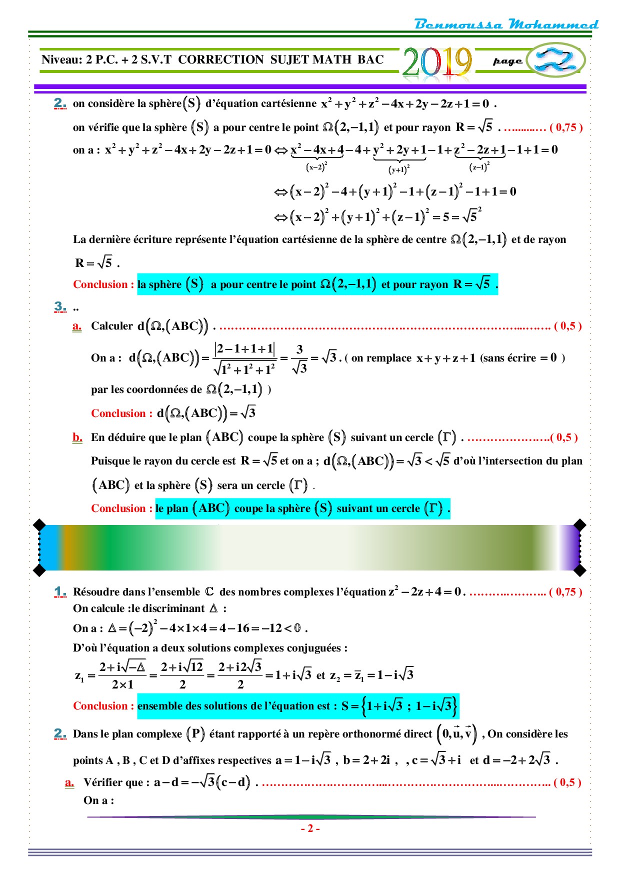 Examen National Maths Sciences et Technologies 2019 Normale - Corrigé
