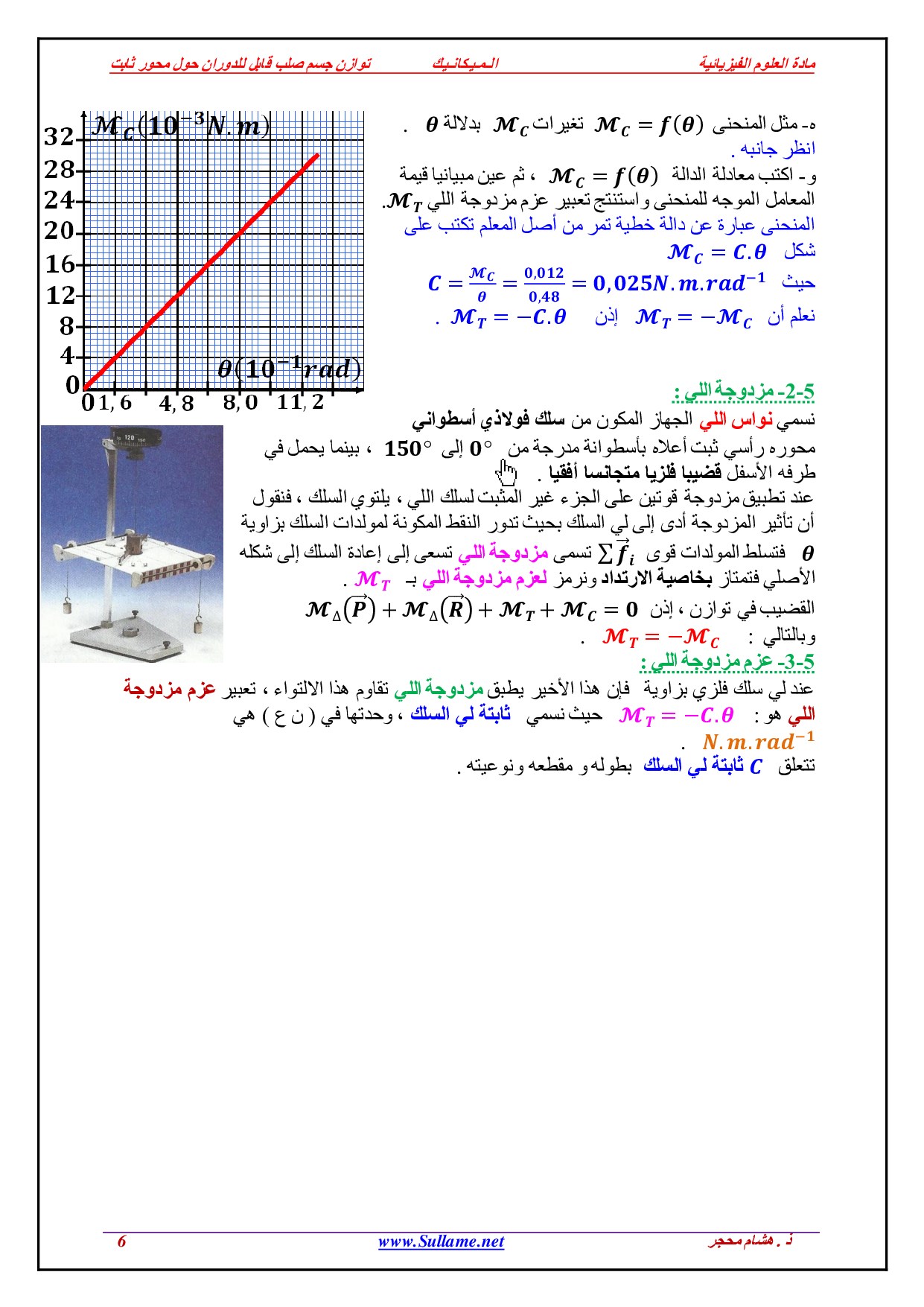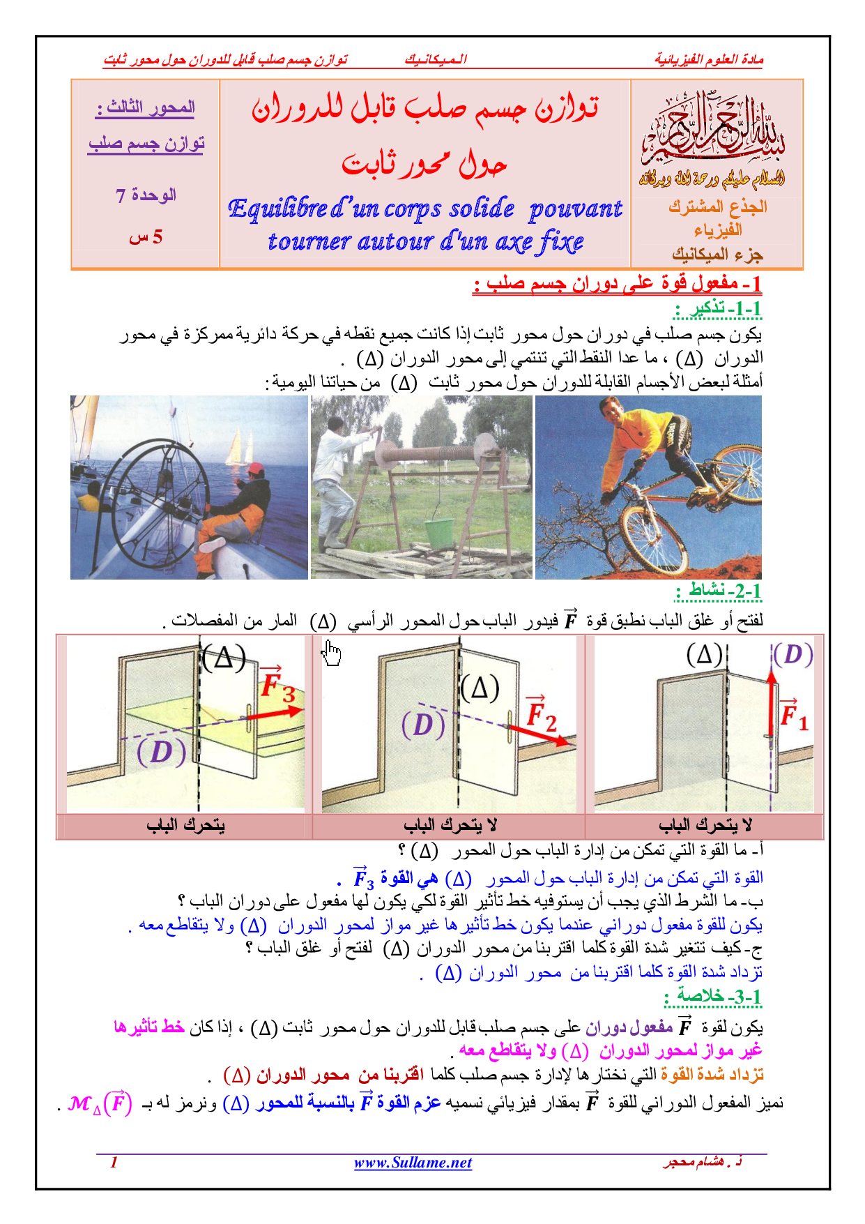 توازن جسم صلب قابل للدوران حول محور تابث - الدرس 1