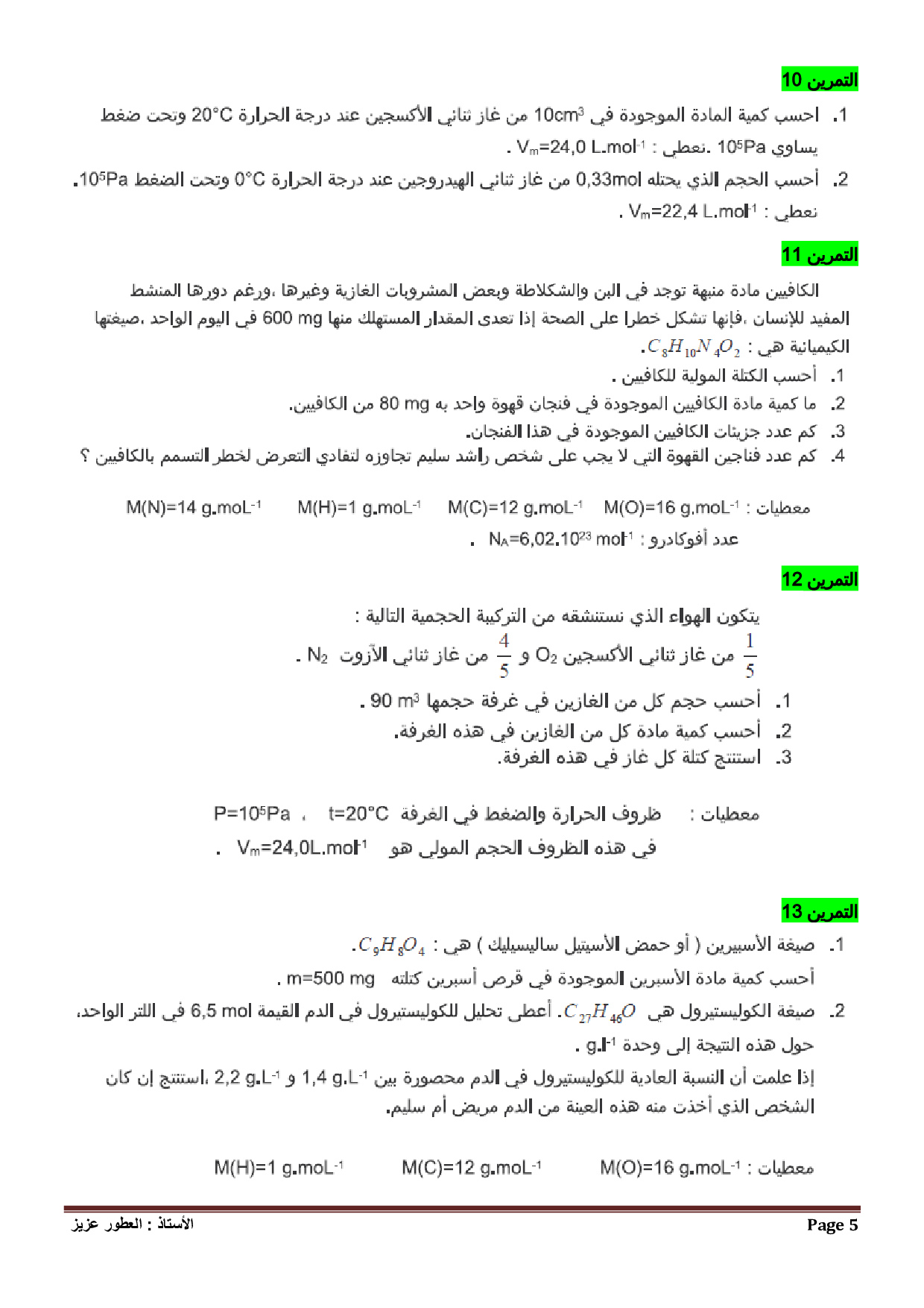 كمية المادة - المول - تمارين غير محلولة 3