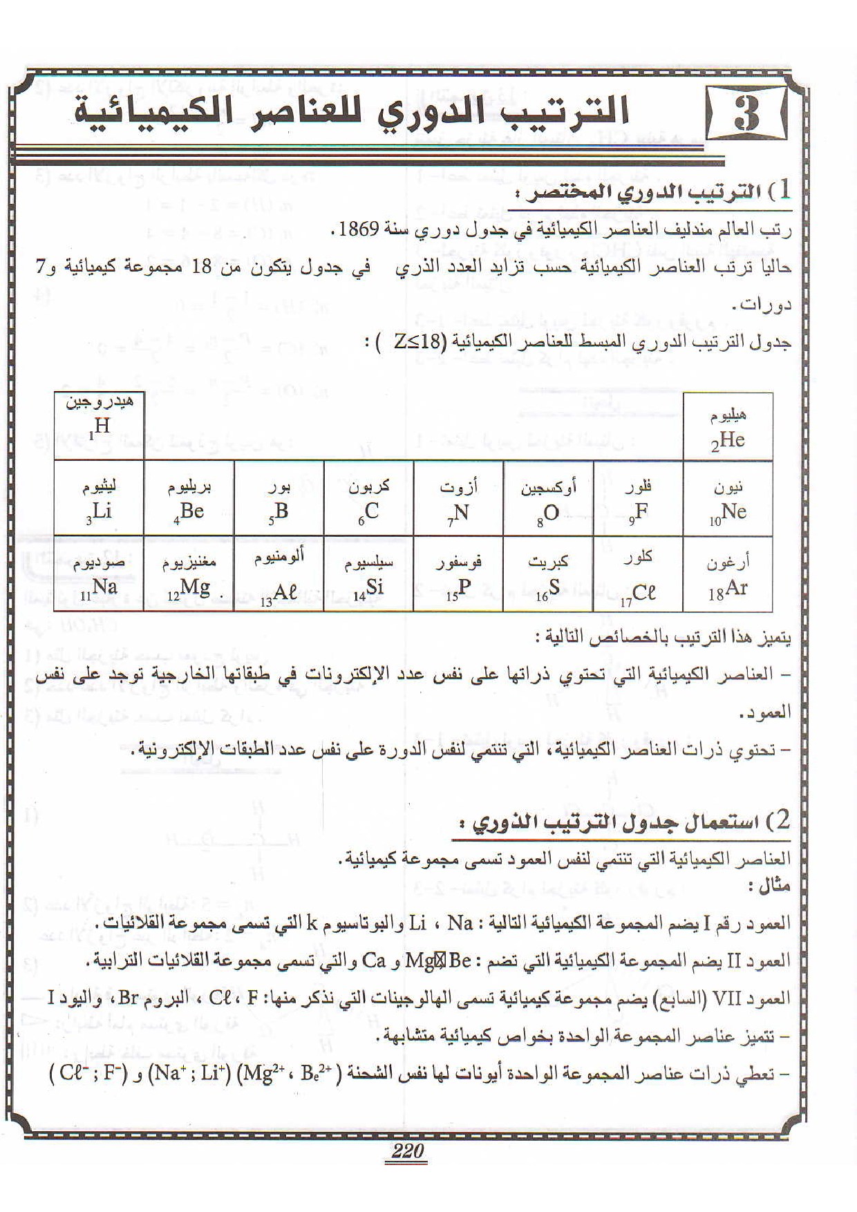 الترتيب الدوري للعناصر الكيميائية - ملخص الدرس 3