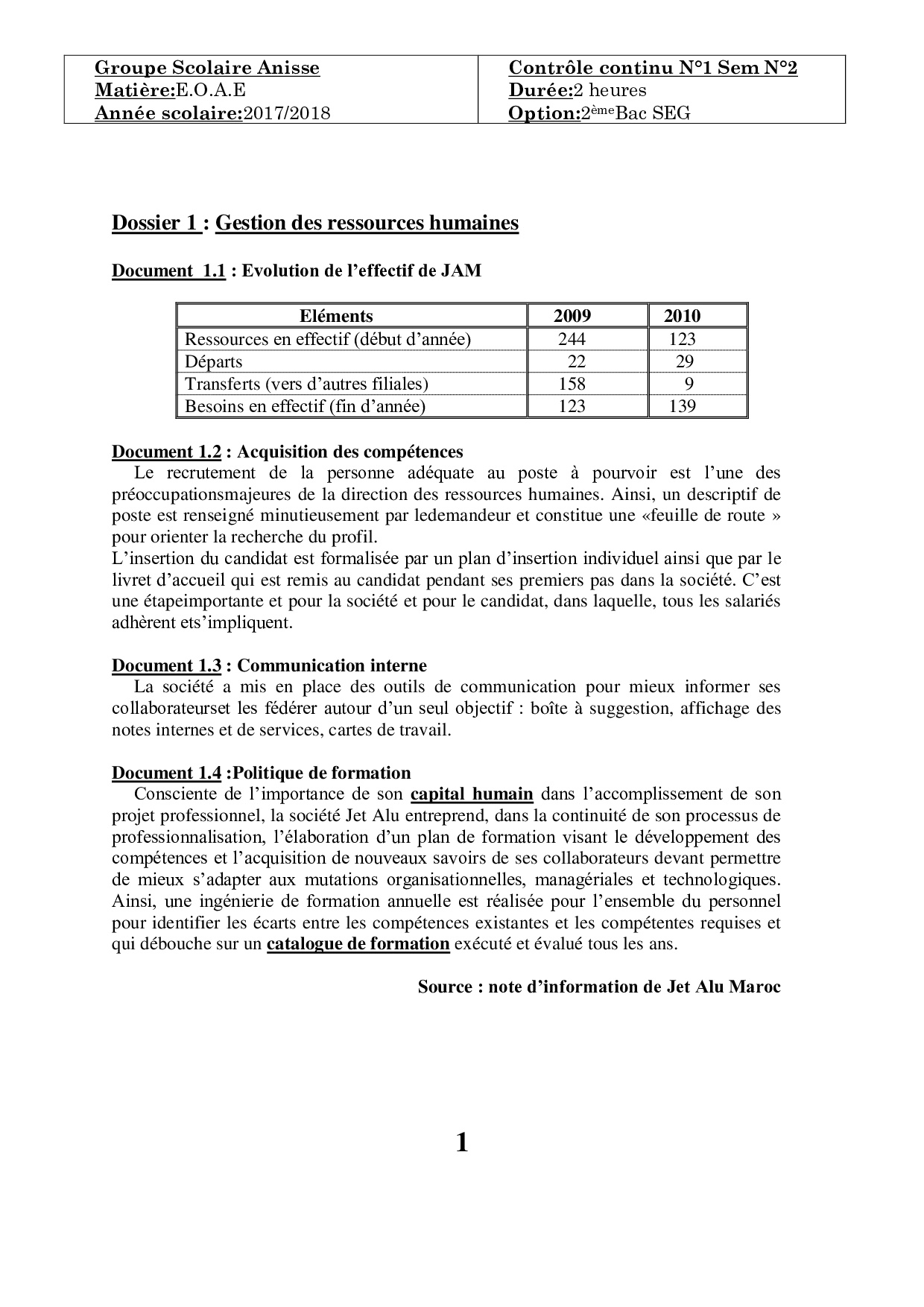 Devoir 1 Modèle 2 - EOAE 2 Bac Eco Semestre 2