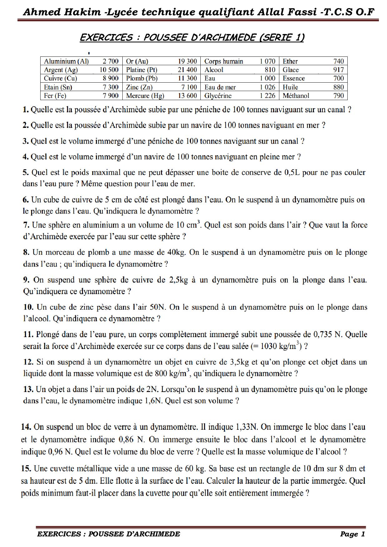 Équilibre d'un corps sous l'action de 2 forces (Tension d'un ressort - Poussée d’Archimède)